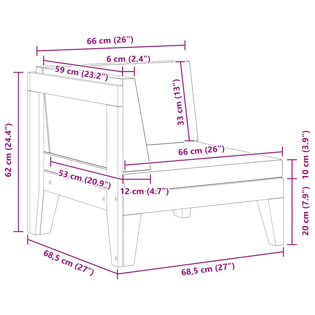 - Διαστάσεις γωνιακού καναπέ: 68,5 x 68,5 x 62 εκ. (Π x Β x Υ)