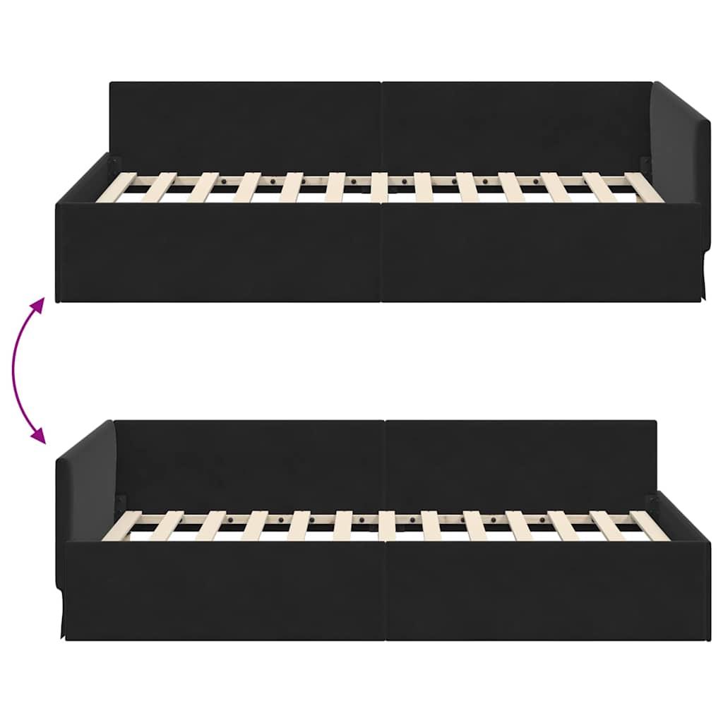 vidaXL Κρεβάτι Γωνίας Μαύρο 90 x 200 cm Βελούδο και Εργοστασιακό ξύλο