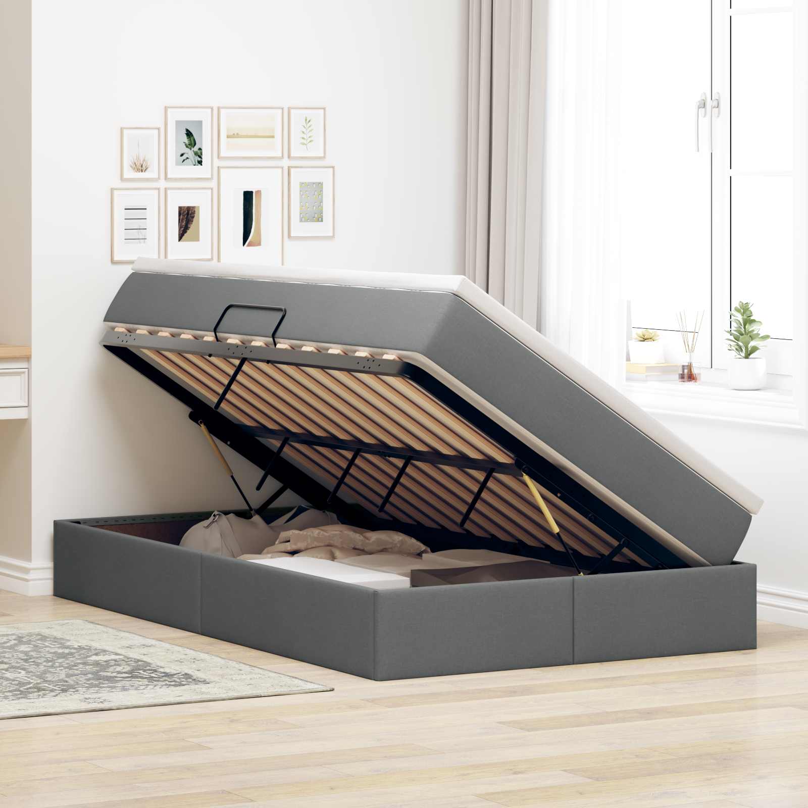 - Χαρακτηριστικά / Λειτουργία: Ο υδραυλικός μηχανισμός ανύψωσης αποκαλύπτει έναν ευρύχωρο αποθηκευτικό χώρο κάτω από το στρώμα, ιδανικό για κλινοσκεπάσματα, ρούχα και άλλα αναγκαία, διατηρώντας τον χώρο σας τακτοποιημένο.