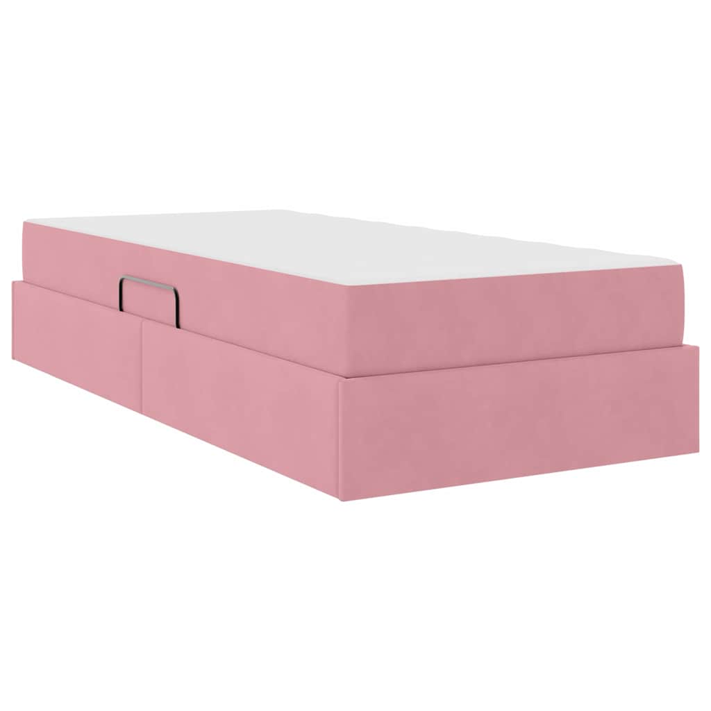 vidaXL Κρεβάτι με αποθηκευτικό χώρο και στρώμα Ροζ 90 x 200 cm Βελούδο