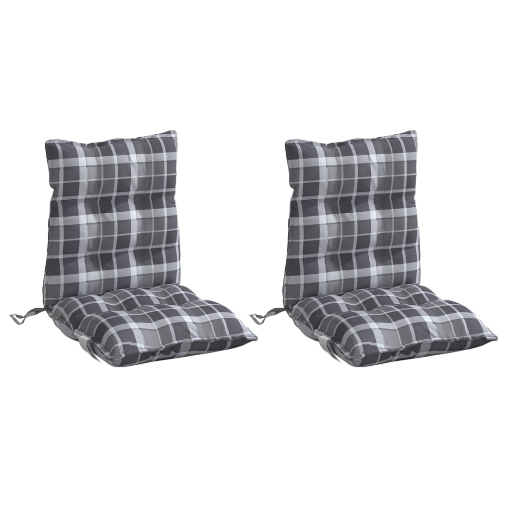 vidaXL Μαξιλάρια Καρέκλας Χαμηλή Πλάτη 2 τεμ. Γκρι Καρό Ύφασμα Oxford