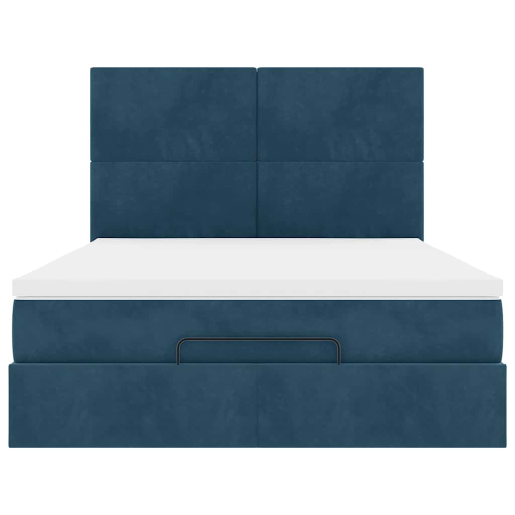 vidaXL Οθωμανικό κρεβάτι με στρώματα Σκούρο μπλε 140x190cm Βελούδο