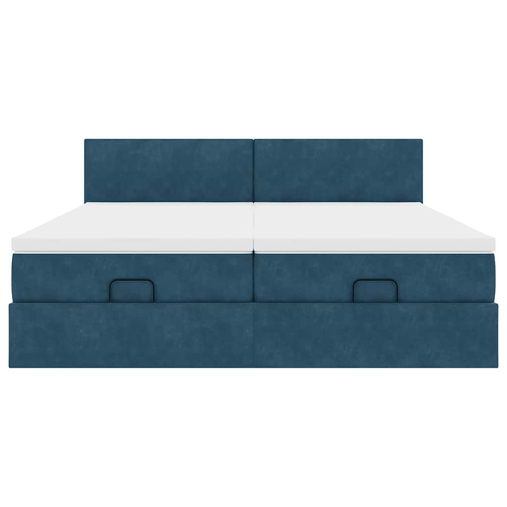 vidaXL Οθωμανικό κρεβάτι με στρώματα & LEDs Σκούρο μπλε Βελούδο