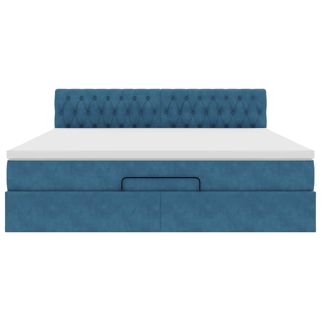 vidaXL Οθωμανικό κρεβάτι με στρώμα&LEDs Σκούρο μπλε 160x200cm Βελούδο