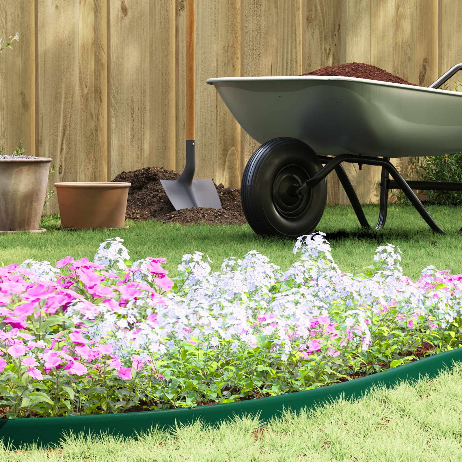 Αυτό το πλαστικό περιθώριο γκαζόν φέρνει απλότητα και λειτουργικότητα στον κήπο σου, με καθαρές γραμμές και λίγο ντεκόρ. Δημιουργεί χωρίς ιδιαίτερο κόπο μια τακτοποιημένη γραμμή γύρω από τα παρτέρια και τα χόρτα. Ιδανικό για κάθε κηπουρό, η πράσινη απόχρωση του συνδυάζεται φυσικά με τους εξωτερικούς χώρους, προσφέροντας αισθητική και χρησιμότητα. Σχεδιασμένο για εξωτερική χρήση, είναι ιδανικό για όσους θέλουν να έχουν μια κλασική αλλά περιποιημένη όψη στον κήπο τους.
