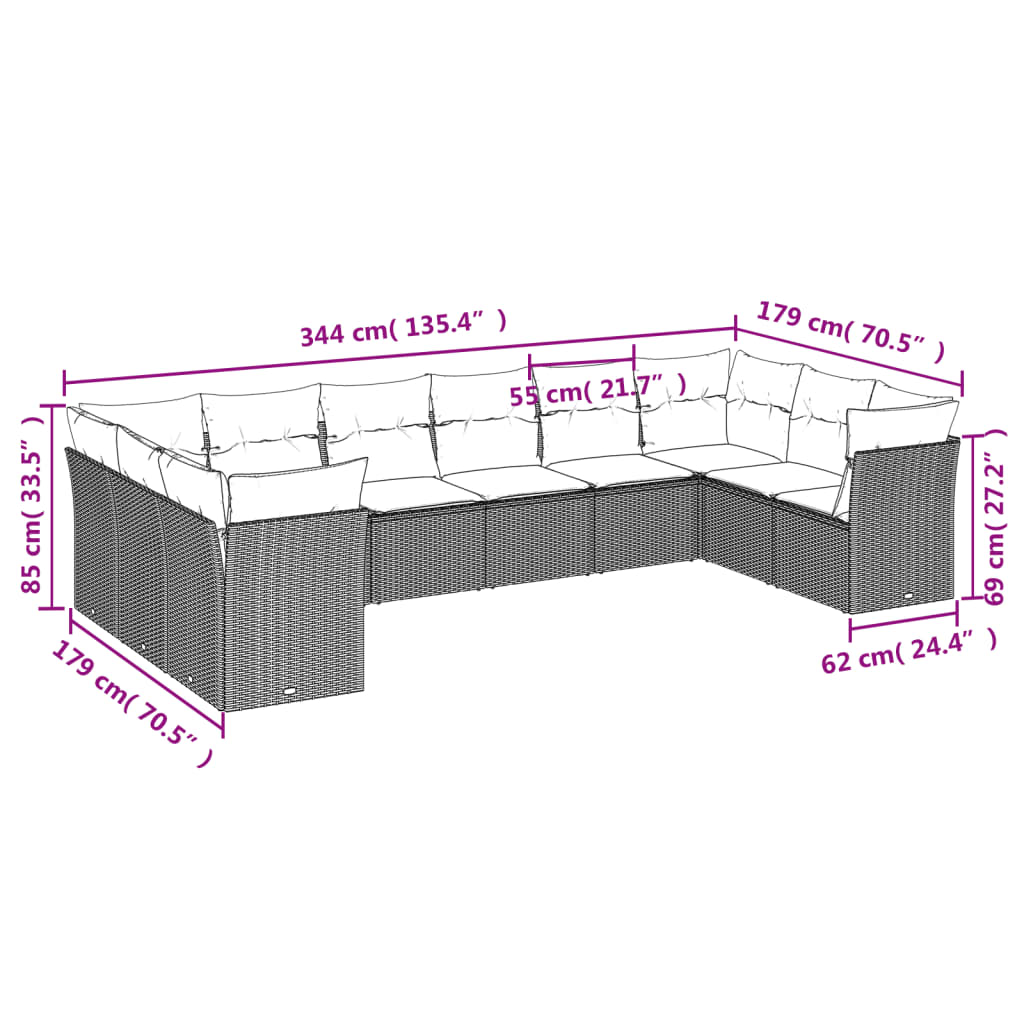 vidaXL Σετ Καναπέ Κήπου 10 τεμ. Μπεζ Συνθετικό Ρατάν με Μαξιλάρια