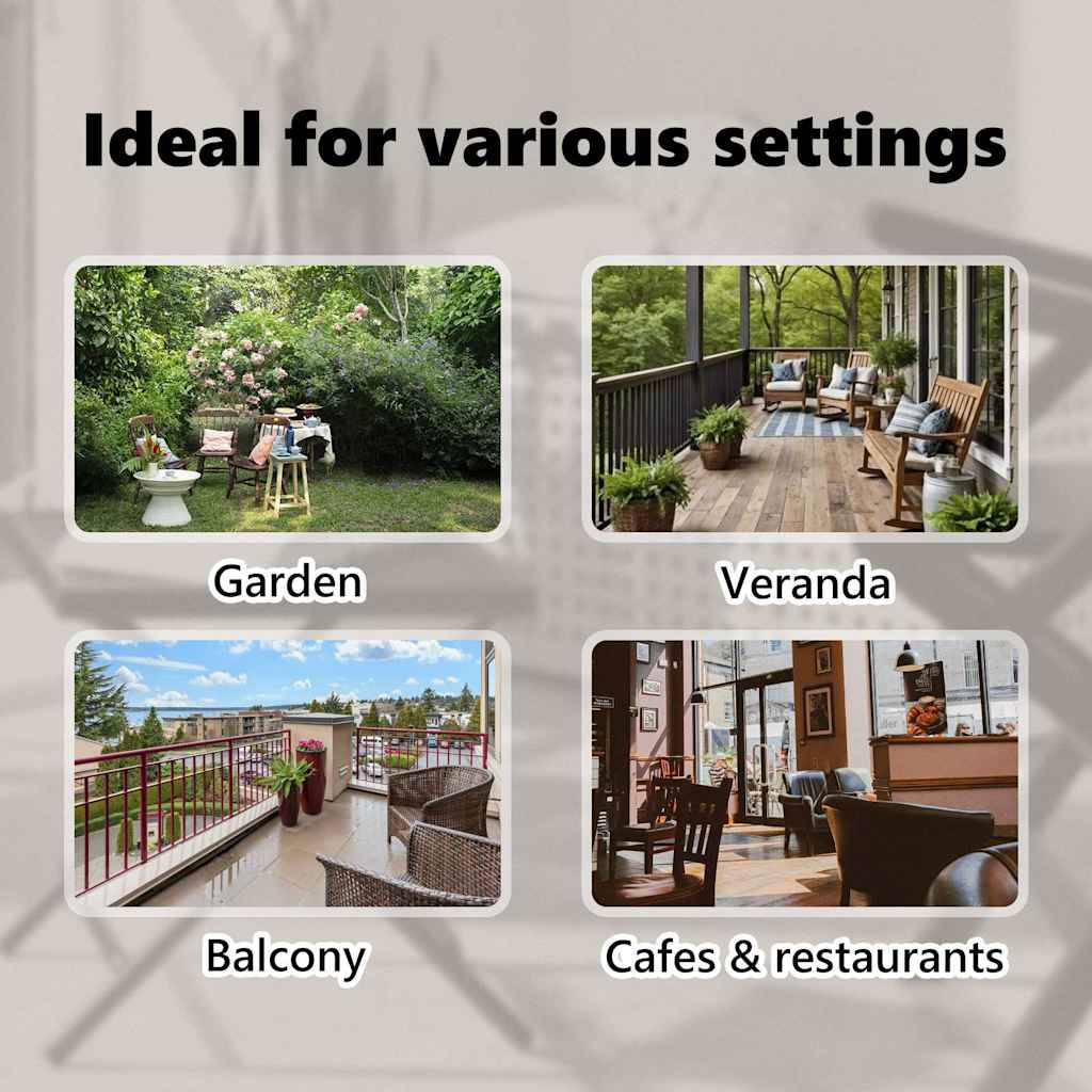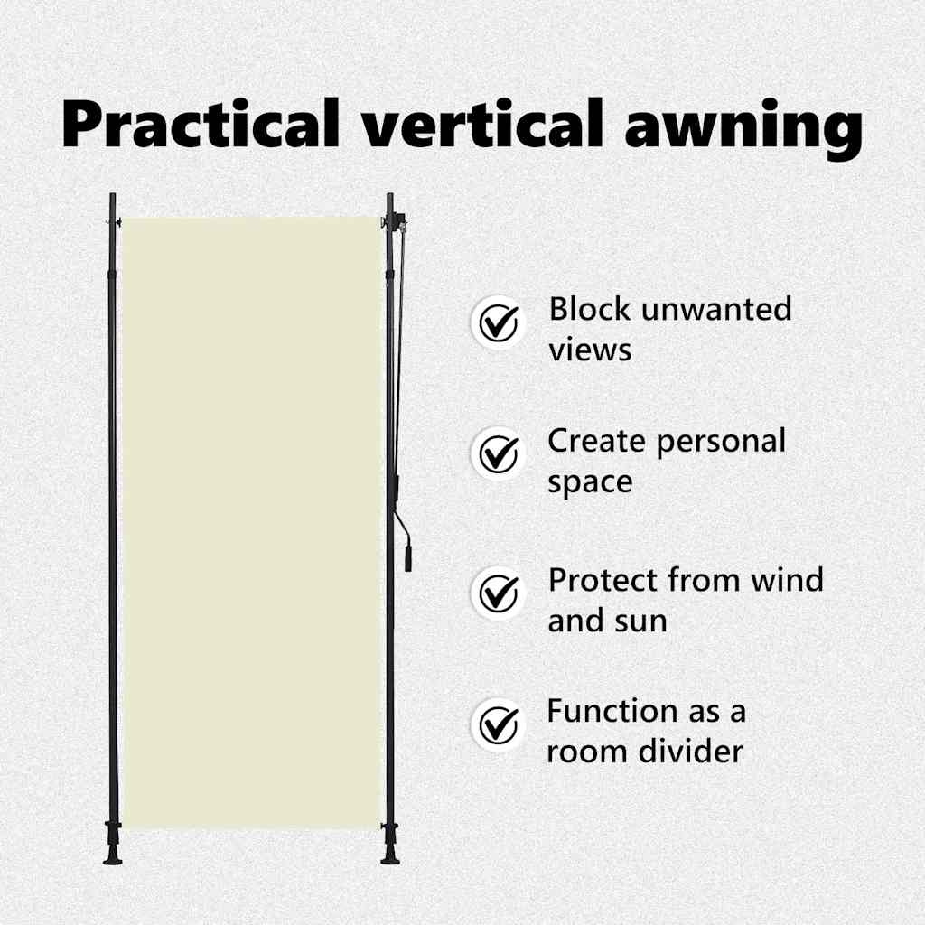 Χάρις στην ποιοτική κατασκευή από ύφασμα με επικάλυψη πολυαμιδίου, διαθέτει αντίσταση στο ξεθώριασμα και θα εμποδίζει τις ακτίνες του ήλιου, επιτρέποντας παράλληλα τη δίοδο του αέρα. Μπορεί εύκολα να τυλιχθεί και να ξετυλιχθεί μέσω της μανιβέλας. Αυτό το κάθετο σκίαστρο συνοδεύεται από δύο όρθιους στύλους που ρυθμίζονται καθ' ύψος από 2 έως 3 μ., ώστε να ταιριάζει στις περισσότερες οροφές. Η εγκατάσταση είναι εύκολη.