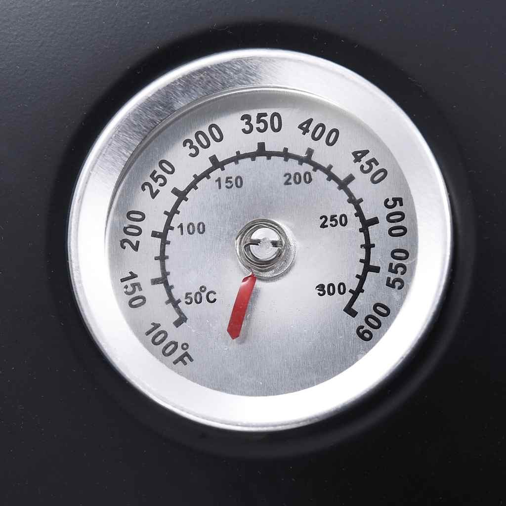 Ο θερμοστάτης που βρίσκεται πάνω στο καπάκι σάς εμφανίζει τη θερμοκρασία, η οποία μπορεί εύκολα να ρυθμιστεί από τις πλαϊνές πόρτες και το καπάκι. Η σχάρα κάρβουνου ανυψώνει τα κάρβουνα για καλύτερη κυκλοφορία του αέρα. Επίσης, τα πόδια σε τριγωνικό σχεδιασμό ενισχύουν τη σταθερότητα. Μετά τη χρήση, η ψησταριά μπορεί να αποσυναρμολογηθεί σε μικρότερα τμήματα, για εύκολη μεταφορά και αποθήκευση. Παρακαλούμε σημειώστε: Βεβαιωθείτε ότι η ψησταριά χρησιμοποιείται πάνω σε επίπεδη και σταθερή επιφάνεια.