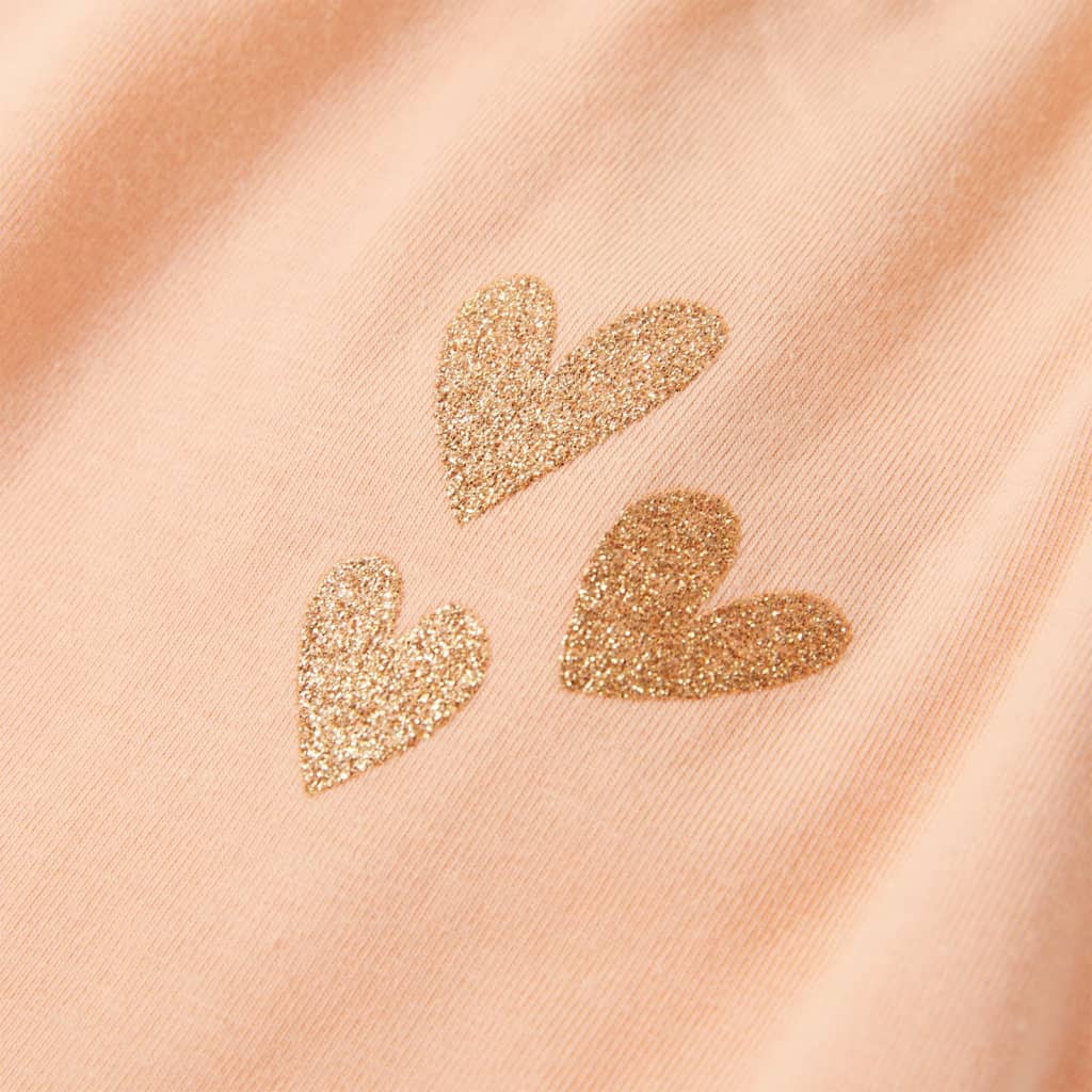 Αυτό το παιδικό αμάνικο μπλουζάκι έχει ελαστικές τιράντες στους ώμους και ίσια γραμμή. Οι καρδιές με χρυσόσκονη κάνουν το παιδικό μπλουζάκι να δείχνει κομψό και όμορφο. Το παιδικό αμάνικο μπλουζάκι είναι κατασκευασμένο από 95% βαμβάκι και 5% ελαστάνη για απαλή και άνετη υφή.