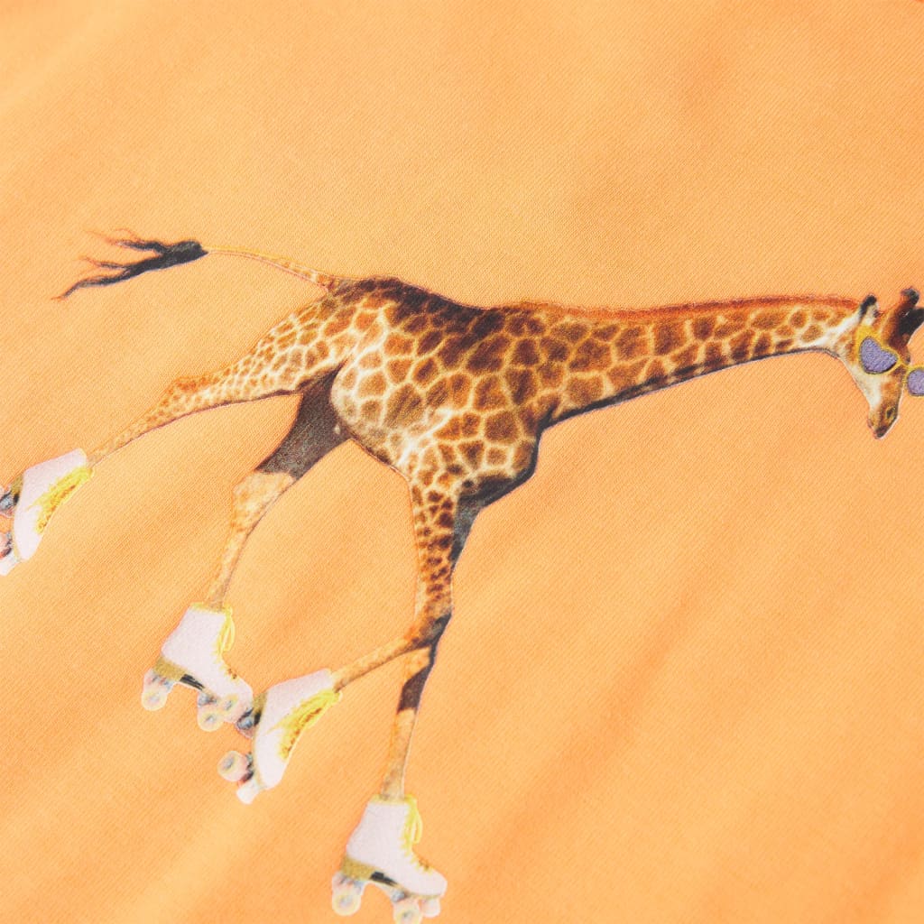 Αυτό το παιδικό μπλουζάκι έχει κοντό μανίκι, στρογγυλή λαιμόκοψη και ίσια εφαρμογή. Αυτό το μπλουζάκι έχει μια καμηλοπάρδαλη με πατίνια στο στήθος. Το παιδικό κοντομάνικο μπλουζάκι είναι κατασκευασμένο από 95% βαμβάκι και 5% ελαστάνη για άνεση και διαπνοή.