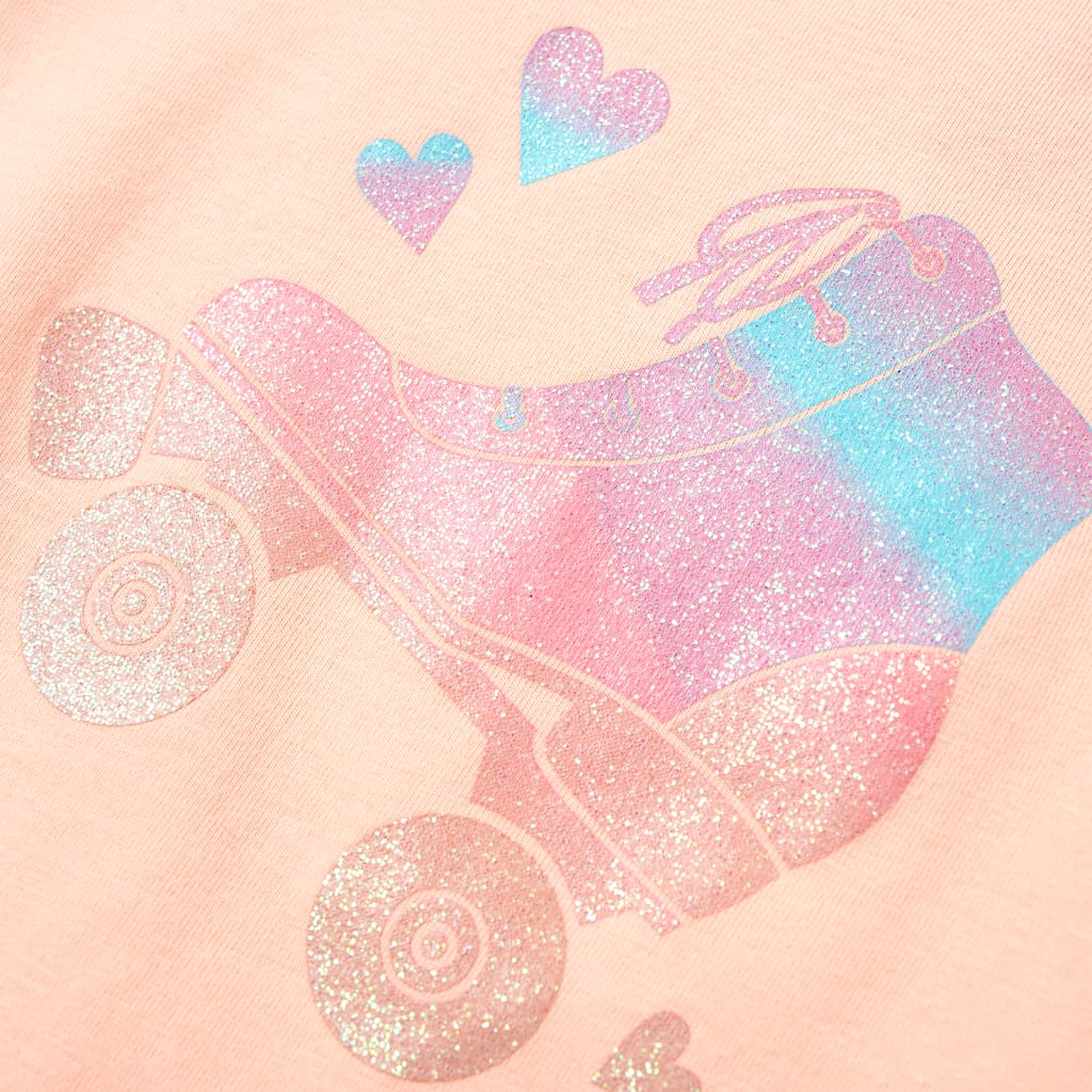Αυτό το παιδικό μπλουζάκι έχει κοντό μανίκι, στρογγυλή λαιμόκοψη και ίσια εφαρμογή. Αυτό το μπλουζάκι έχει ένα πατίνι με χρυσόσκονη στο στήθος. Το παιδικό κοντομάνικο μπλουζάκι είναι κατασκευασμένο από 95% βαμβάκι και 5% ελαστάνη για άνεση και διαπνοή.