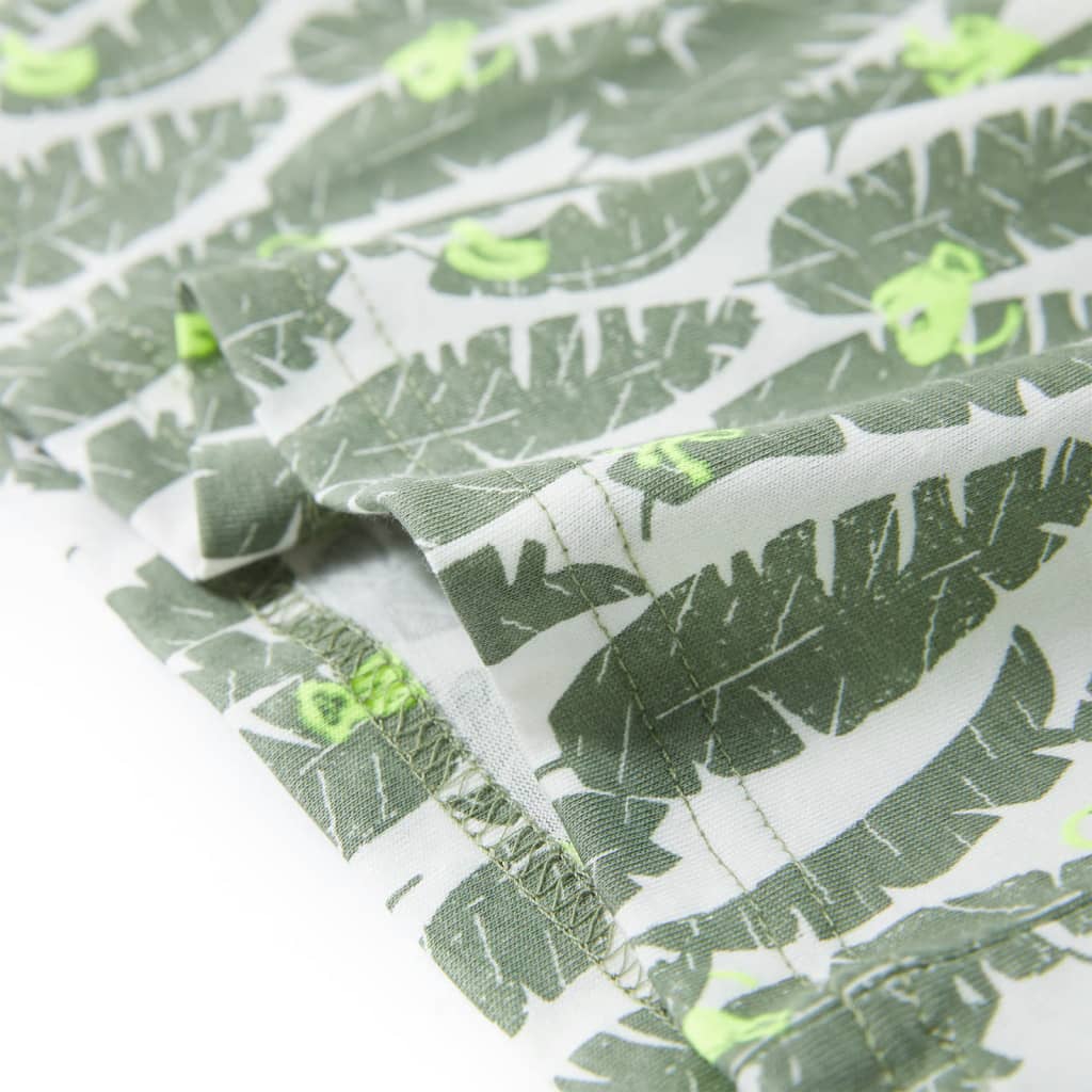 Αυτό το παιδικό μπλουζάκι έχει κοντό μανίκι, στρογγυλή λαιμόκοψη και ίσια εφαρμογή. Το παιδικό μπλουζάκι είναι τυπωμένο με φύλλα και μαϊμουδάκια σε όλη την επιφάνεια. Το παιδικό κοντομάνικο μπλουζάκι είναι κατασκευασμένο από 100% βαμβάκι για να είναι απαλό και άνετο.