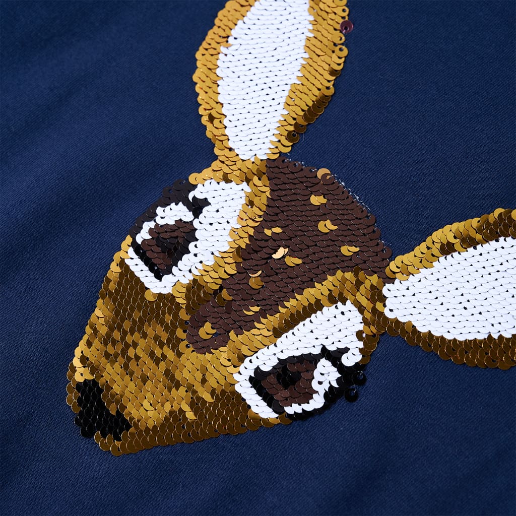 Αυτό το παιδικό μπλουζάκι έχει μακριά μανίκια, στρογγυλή λαιμόκοψη και ίσια γραμμή. Το σχέδιο ελαφιού, κεντημένο με αναστρέψιμες πούλιες, χαρίζει μια νότα μαγείας στη μπροστινή όψη. Το παιδικό μακρυμάνικο μπλουζάκι είναι κατασκευασμένο από μαλακό υλικό με 95% βαμβάκι και 5% ελαστάνη για επιπλέον άνεση και διαπνοή.
