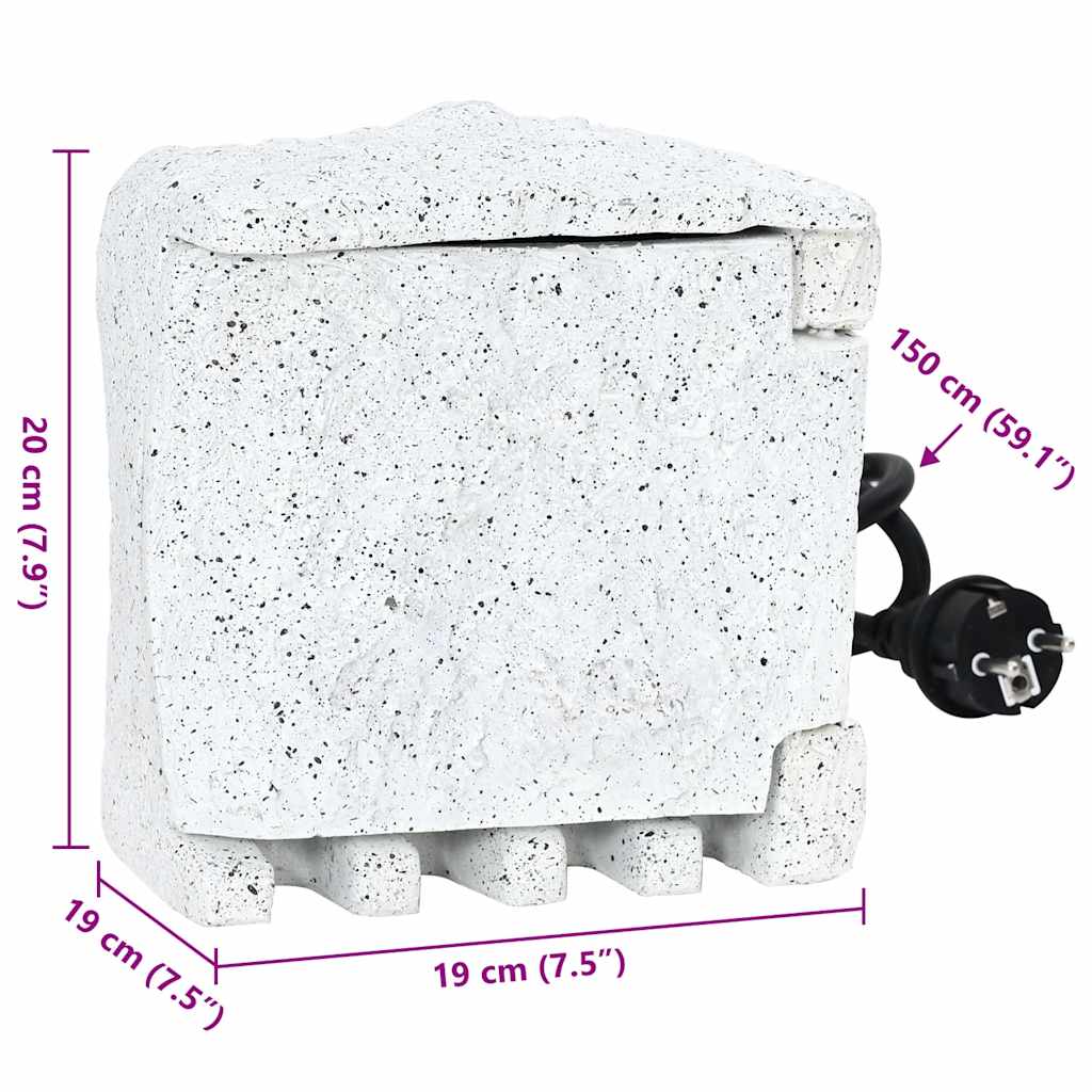 Διαθέτει δύο υποδοχές και ένα χρονοδιακόπτη που βρίσκονται πίσω από ένα περίβλημα ρητίνης με όψη απομίμησης πέτρας. Ο μηχανικός χρονοδιακόπτης απενεργοποιεί αυτόματα τις ηλεκτρικές συσκευές. Το μαγνητικό πορτάκι και τα προστατευτικά καλύμματα με ελατήριο σε κάθε υποδοχή είναι πολύ βολικά.