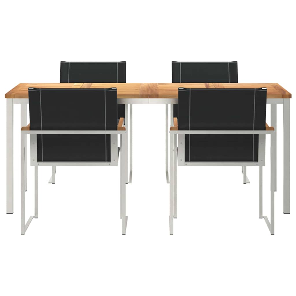 Αυτό το ευρύχωρο σετ φαγητού κήπου είναι τέλειο για να απολαμβάνετε τα γεύματα σας έξω. Έχει ένα μεγάλο ορθογώνιο τραπέζι και τέσσερις μοντέρνες καρέκλες. Το σετ συνδυάζει συμπαγές ξύλο ακακίας με σκελετό από ανθεκτικό ατσάλι χωρίς σκουριά, προσφέροντάς σας έναν κομψό αλλά και πρακτικό τρόπο χρήσης σε οποιονδήποτε εξωτερικό χώρο.