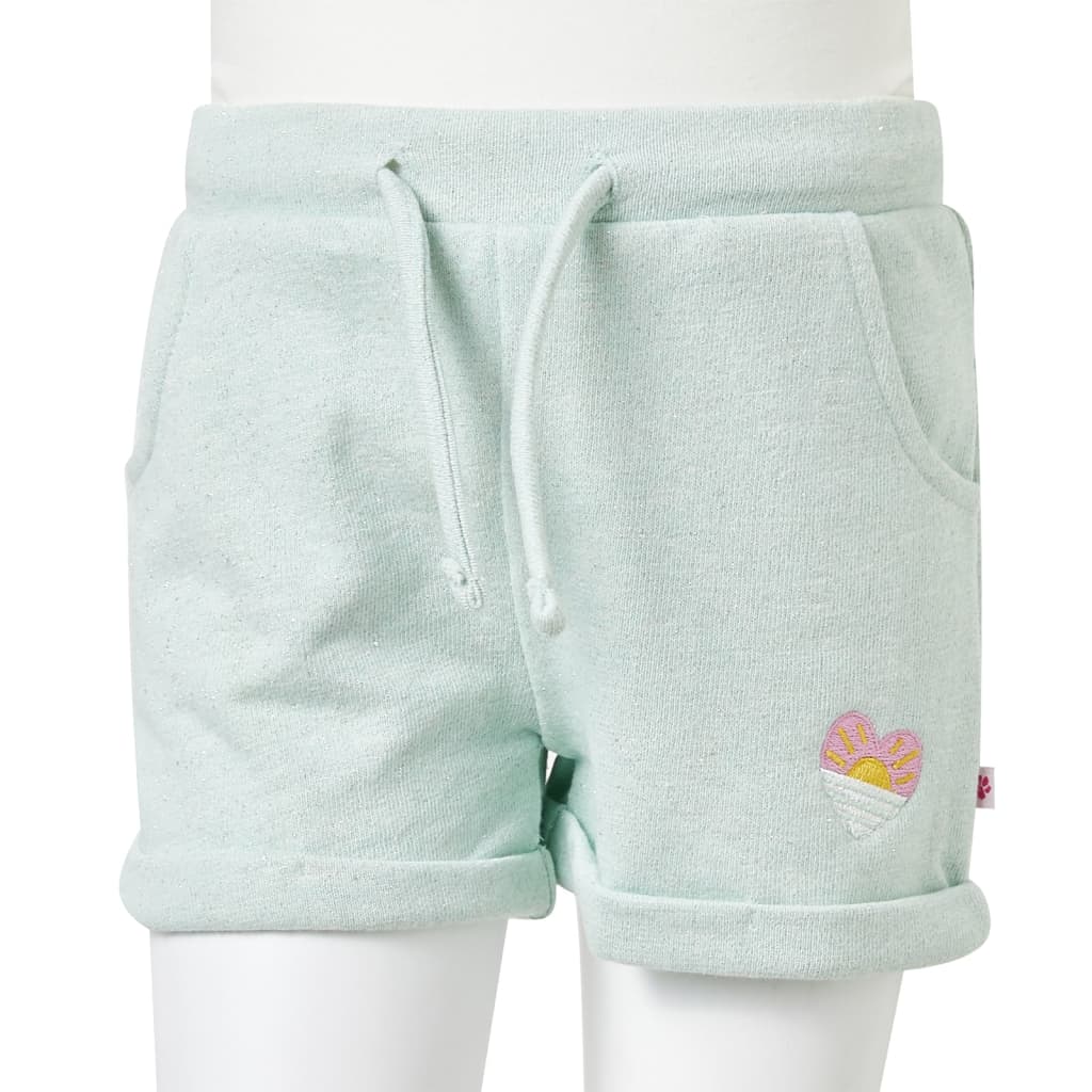 Αυτό το παιδικό σορτσάκι έχει ελαστική ζώνη με κορδόνι και δύο τσέπες μπροστά. Αυτό το παιδικό σορτσάκι είναι διακοσμημένο με μια κεντημένη καρδιά. Το παιδικό σορτσάκι είναι κατασκευασμένο από μαλακό υλικό που περιλαμβάνει 89% βαμβάκι και 11% πολυεστέρα για άνεση και διαπνοή.