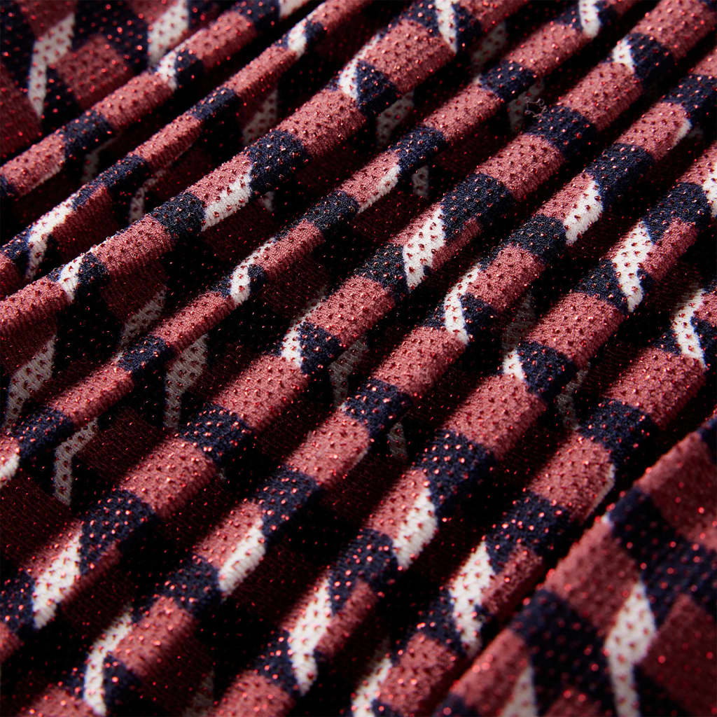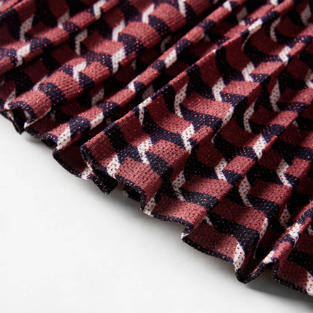 Αυτή η παιδική φούστα έχει γραμμή Α και φαρδιά ελαστική ζώνη στη μέση. Οι πιέτες προσθέτουν κομψότητα στη κοντή παιδική φούστα. Η κοριτσίστικη φούστα έχει όμορφα σχέδια και κόκκινη χρυσόσκονη. Η παιδική φούστα είναι κατασκευασμένη από μαλακό υλικό που περιλαμβάνει πολυαμίδιο, λούρεξ και ελαστάνη για άνεση και διαπνοή.