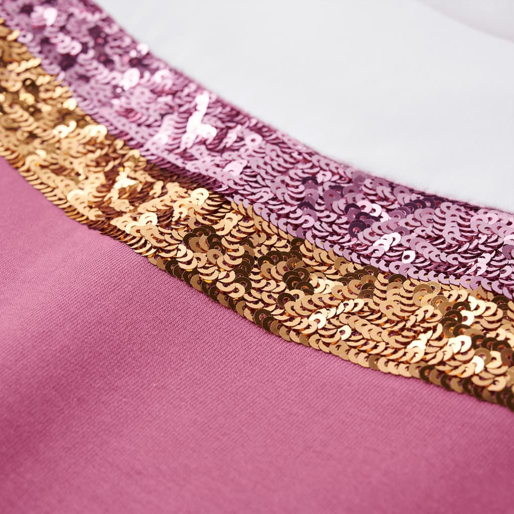 Αυτό το παιδικό φούτερ έχει μακριά μανίκια, στρογγυλή λαιμόκοψη και πλέξη ριμπ στις μανσέτες, στη λαιμόκοψη και στο κάτω μέρος. Η παιδική μπλούζα σε σκούρο φούξια χρώμα διαθέτει δύο ρίγες σε σχήμα βέλους στο στήθος με παγιέτες, για επιπλέον ομορφιά. Το πουλόβερ είναι κατασκευασμένο από 95% βαμβάκι και 5% ελαστάνη για άνεση και διαπνοή. Η απαλή φλις επένδυση παρέχει επιπλέον ζεστασιά.