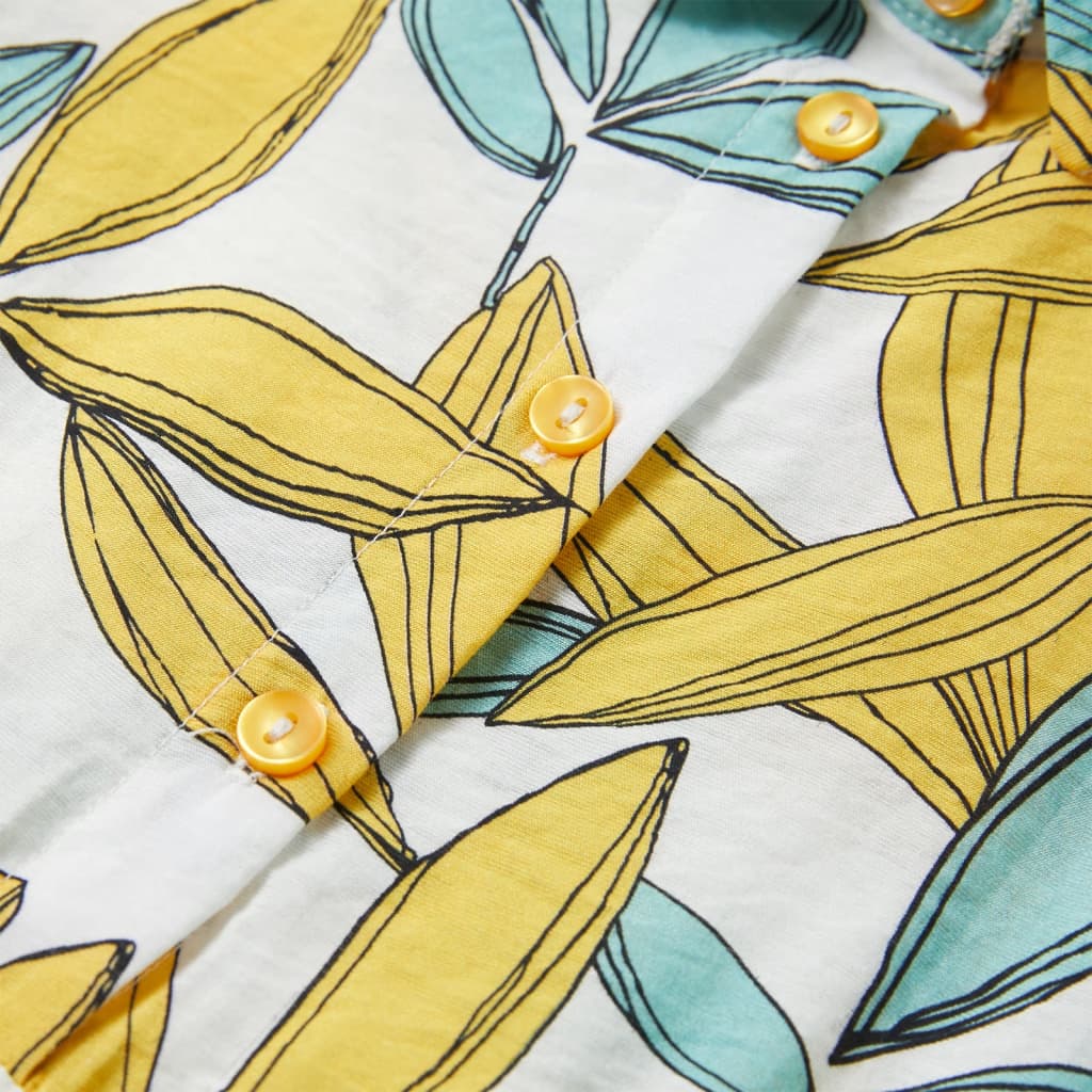 Αυτό το παιδικό φόρεμα έχει κοντά μανίκια, έναν γυριστό γιακά και κλείνει με κουμπιά μπροστά. Το παιδικό φόρεμα έχει εκτύπωση με λουλούδια παντού. Το παιδικό κοντό φόρεμα είναι κατασκευασμένο από μαλακό υλικό που περιλαμβάνει 80% ρεγιόν και 20% νάιλον για άνεση και διαπνοή.