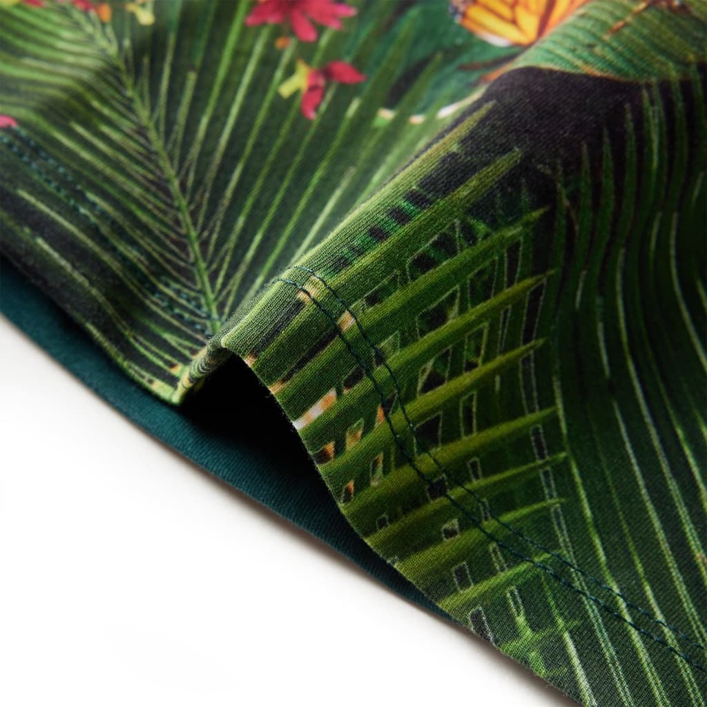 Αυτό το παιδικό φόρεμα έχει μακριά μανίκια, στρογγυλή λαιμόκοψη και κλείνει με φερμουάρ στο πίσω μέρος. Αυτό το σκούρο πράσινο παιδικό φόρεμα διαθέτει ένα υπέροχο σχέδιο γάτας. Το κοντό παιδικό φόρεμα είναι κατασκευασμένο από μαλακό υλικό που περιλαμβάνει βαμβάκι και ελαστάνη για άνεση και διαπνοή.