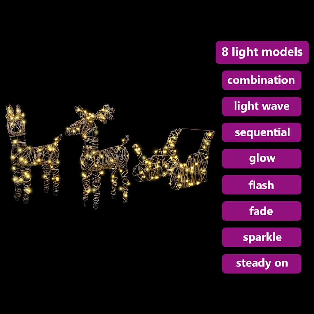 vidaXL Έλκηθρο με Ελάφια Θερμό λευκό 52.5 x 28 x 32.5 εκ. Ρατάν