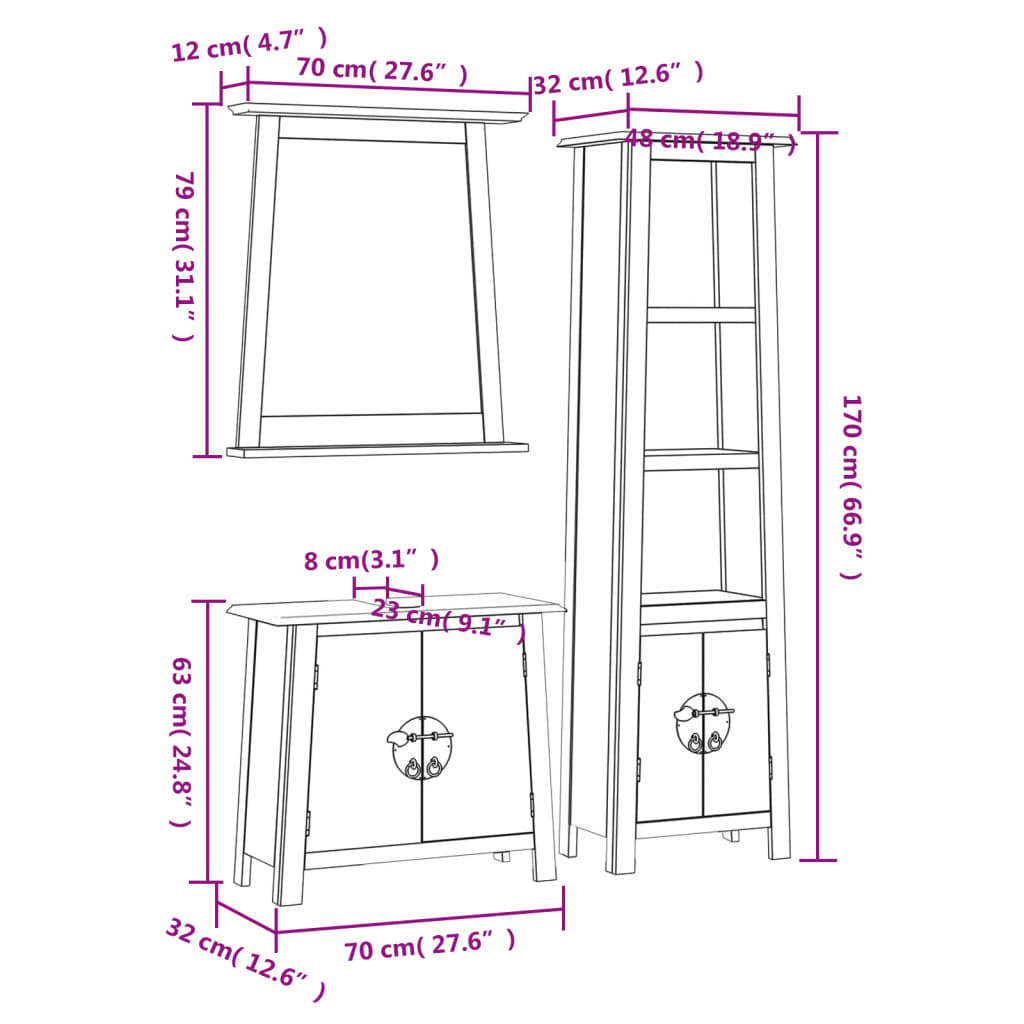 vidaXL Έπιπλα Μπάνιου Σετ 3 Τεμαχίων από Μασίφ Ξύλο Πεύκου