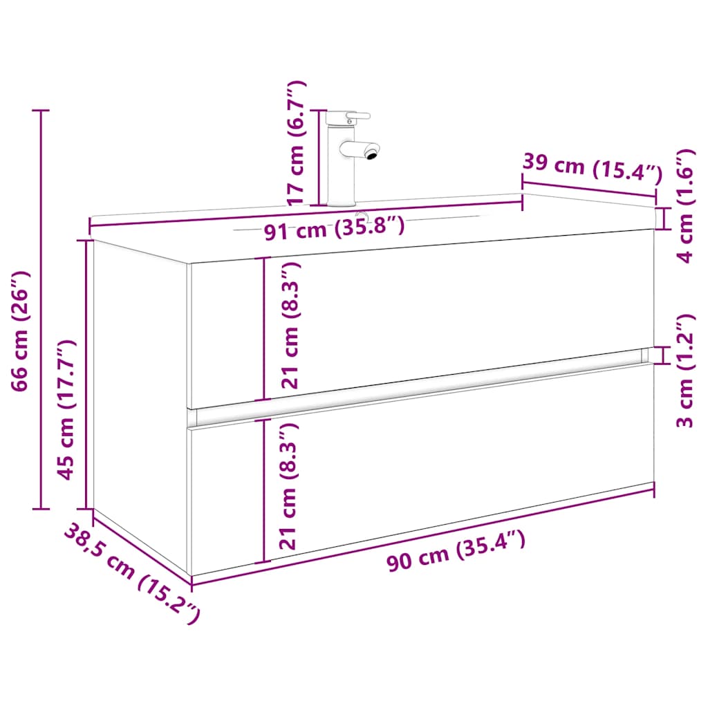 • Συνολικές νιπτήρα: 91 x 39 x 18 εκ. (Μ x Π x Υ)