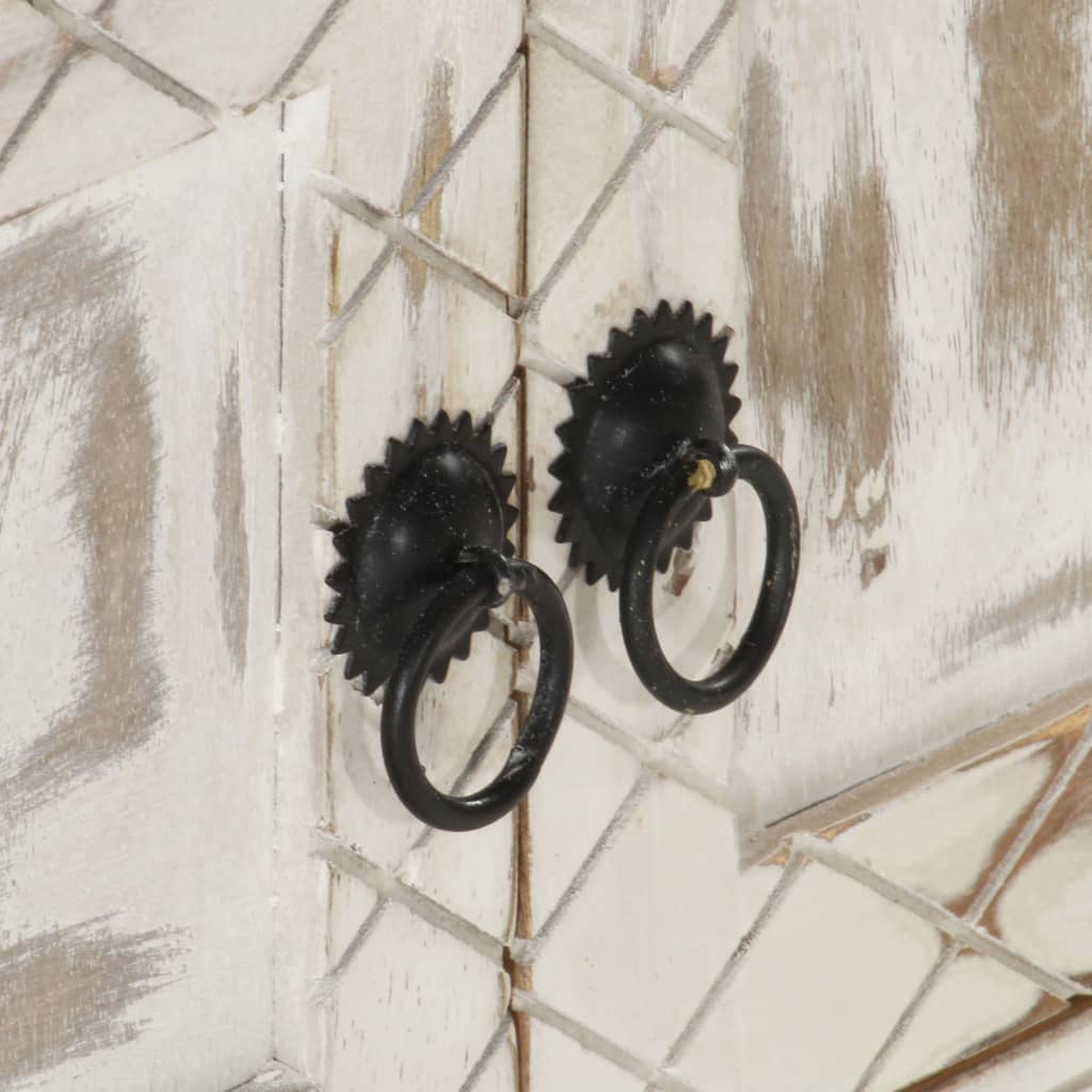 Αυτή η βάση τηλεόρασης είναι κατασκευασμένη από μασίφ ξύλο μάνγκο και διαθέτει υπέροχο λευκό αντικέ στιλ. Οι διαδικασίες του γυαλίσματος, του βαψίματος και του λουστραρίσματος είναι περίτεχνα ολοκληρωμένες. Με 4 πόρτες, αυτό το ντουλάπι παρέχει άφθονο χώρο για την αποθήκευση των συσκευών πολυμέσων, των βιβλίων σας, καθώς και διαφόρων άλλων αντικειμένων.