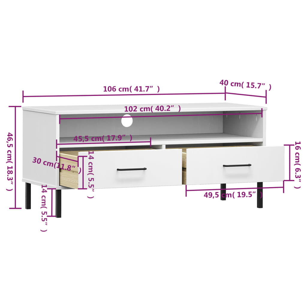 vidaXL Έπιπλο Τηλεόρασης OSLO Λευκό Μασίφ Ξύλο Πεύκου με Μετ. Πόδια