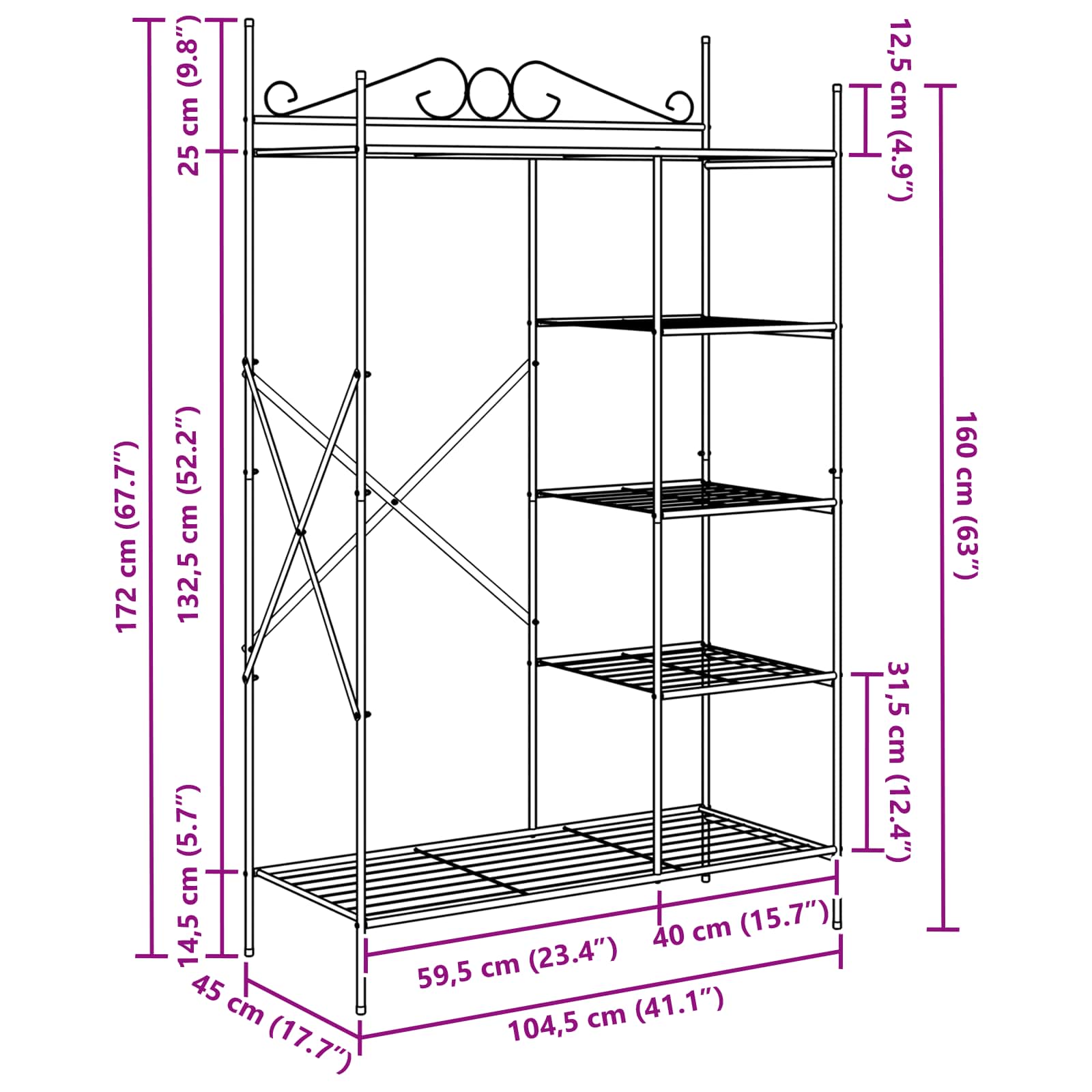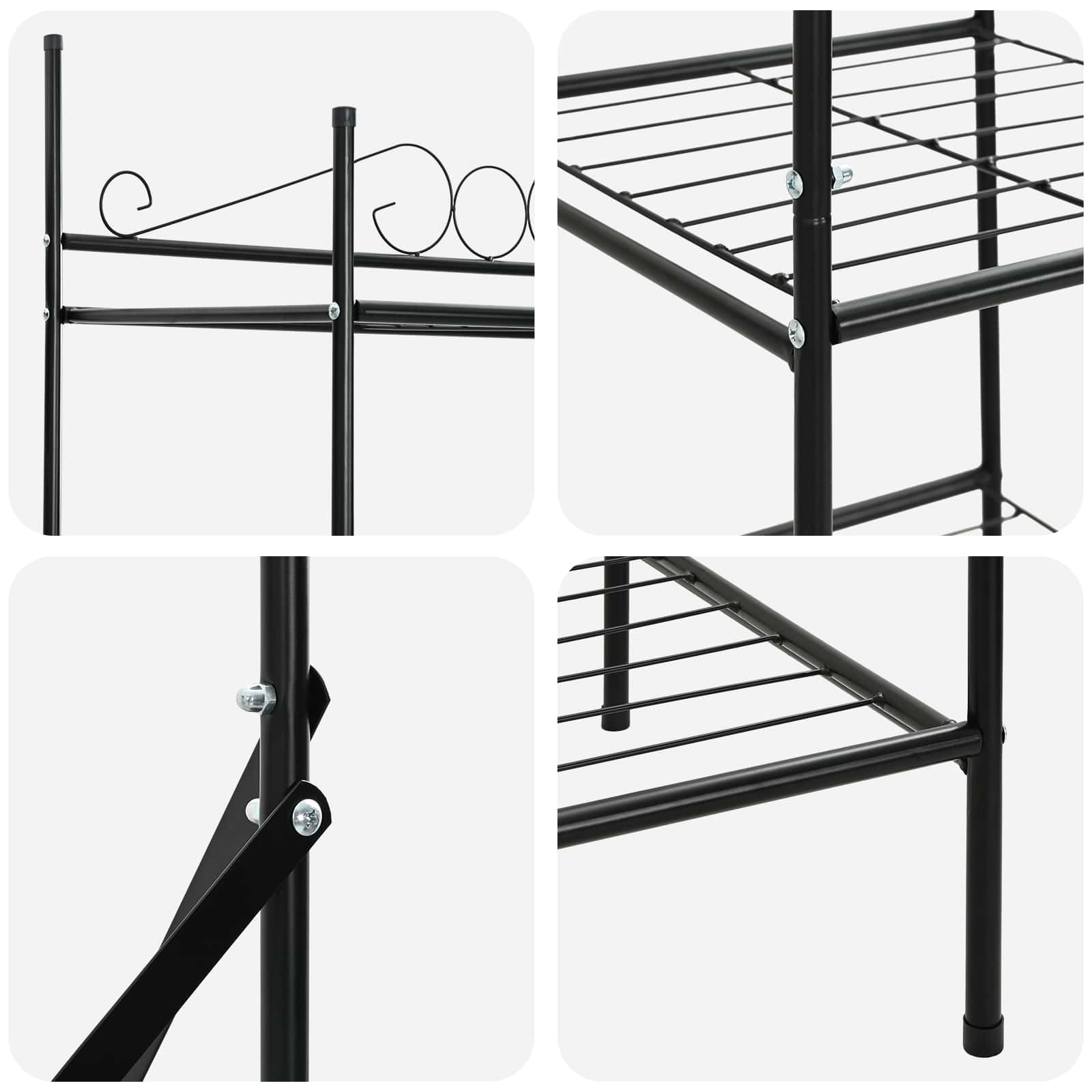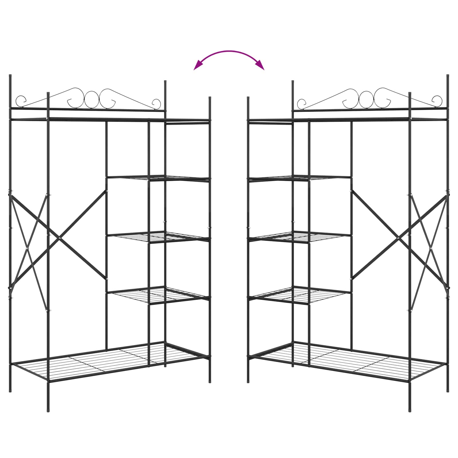 - Συρμάτινα ράφια: Αυτή η ντουλάπα έχει ελαφριά συρμάτινα ράφια, που προσφέρουν εξαιρετική αερισμό και εύκολη ορατότητα για τα αποθηκευμένα αντικείμενα. Ιδανική για να οργανώσει ρούχα, παπούτσια ή αξεσουάρ, αυτά τα ράφια διατηρούν τα πράγματα φρέσκα. Το μαύρο χρώμα προσθέτει μοντέρνα κομψότητα που συμπληρώνει το μινιμαλιστικό design της ντουλάπας.