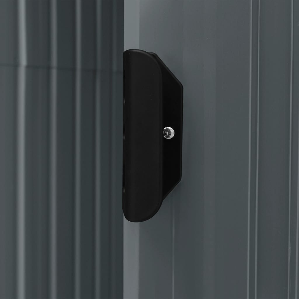 Αυτή η αποθήκη είναι κατασκευασμένη από γαλβανισμένο σίδερο, ώστε να είναι σταθερή και να συντηρείται εύκολα. Το υπόστεγο κήπου διαθέτει αεραγωγούς τόσο μπροστά όσο και πίσω, διασφαλίζοντας εξαιρετικό εξαερισμό. Η μονή συρόμενη πόρτα με πλαστική λαβή πόρτας στο μπροστινό μέρος επιτρέπει την εύκολη είσοδο και έξοδο.