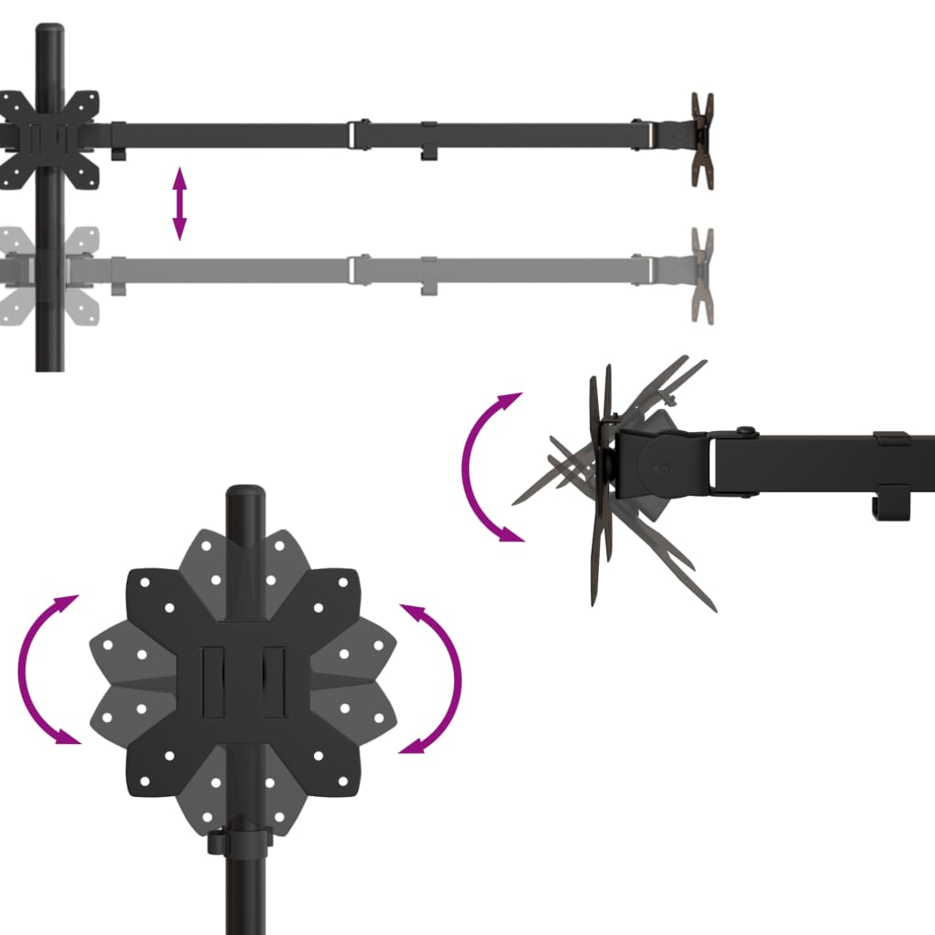- Ρυθμιζόμενη με πολλούς τρόπους: Αυτή η βάση οθόνης μπορεί να έχει κλίση προς τα πάνω ή προς τα κάτω κατά 90°, να περιστρέφεται προς τα αριστερά ή προς τα δεξιά κατά 90° ή 120° και να περιστρέφεται 360°. Μπορείτε επίσης να ρυθμίσετε το ύψος για την καλύτερη ορατότητα.
