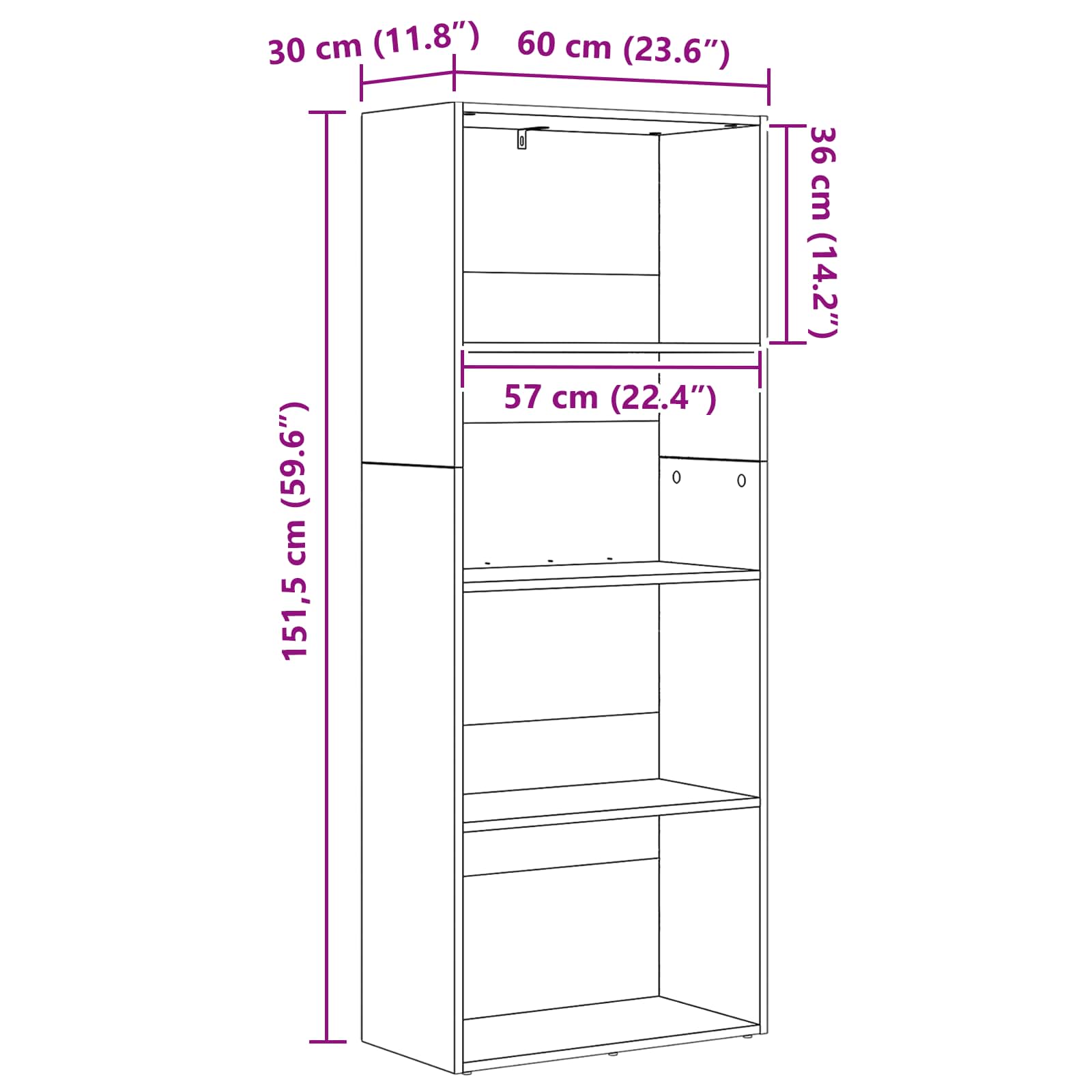 - Συνολικές διαστάσεις: 60 x 30 x 151,5 εκ (Μ x Π x Υ)