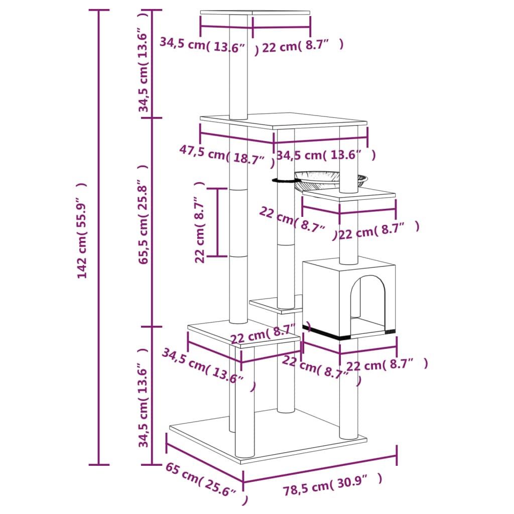 vidaXL Γατόδεντρο Σκούρο Γκρι 142 εκ. με Στύλους Ξυσίματος από Σιζάλ