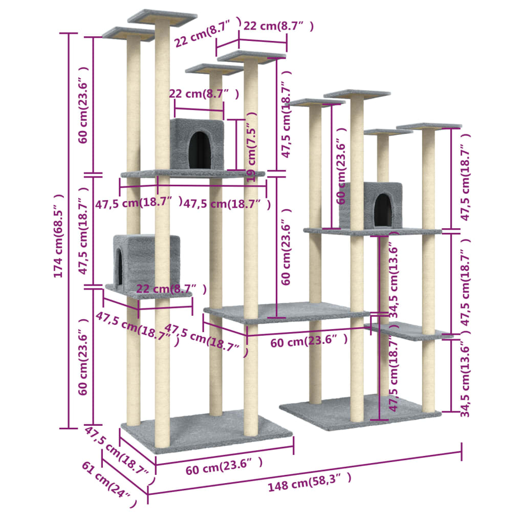 vidaXL Γατόδεντρο Aνοιχτό Γκρι 174 εκ. με Στύλους Ξυσίματος από Σιζάλ
