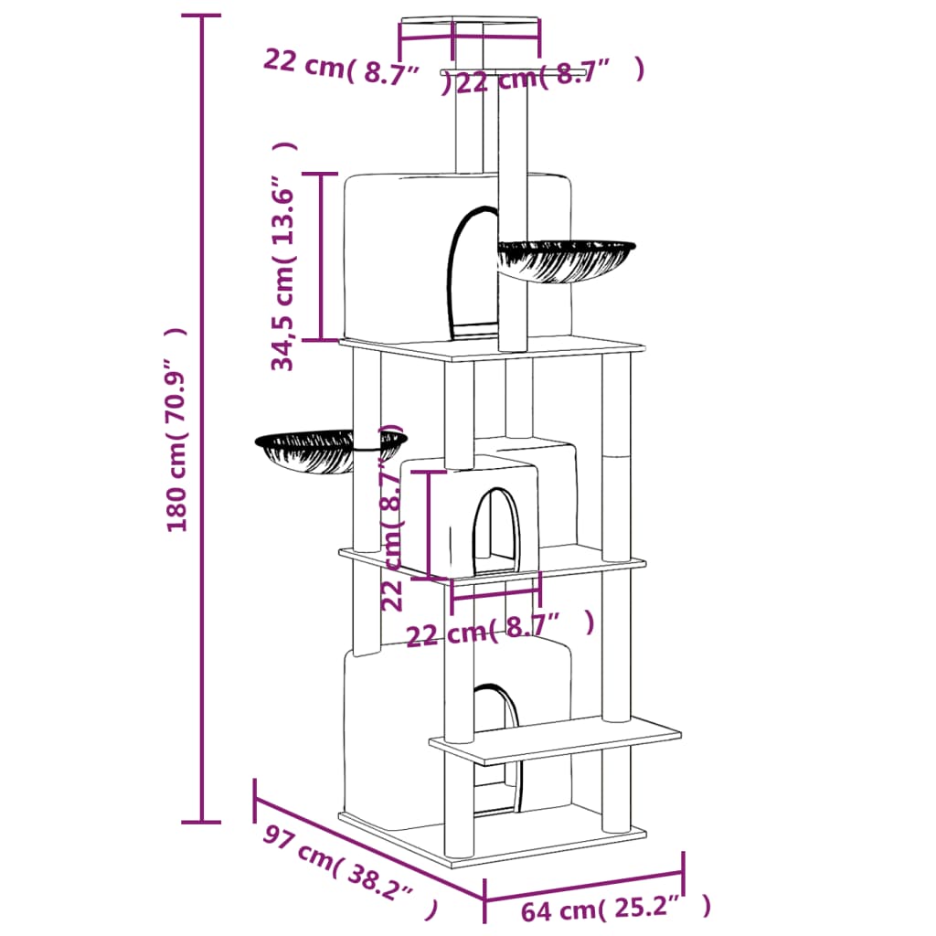 - Πύργος γάτας «όλα σε ένα»: Αυτό το έπιπλο πολλαπλών επιπέδων για γάτες είναι σχεδιασμένο με 4 σπίτια, 2 αιώρες και πλατφόρμες, παρέχοντας το ιδανικό μέρος ώστε οι γάτες σας να σκαρφαλώνουν, να κάθονται, να ξύνονται, να κρύβονται, καθώς και να χαλαρώνουν.