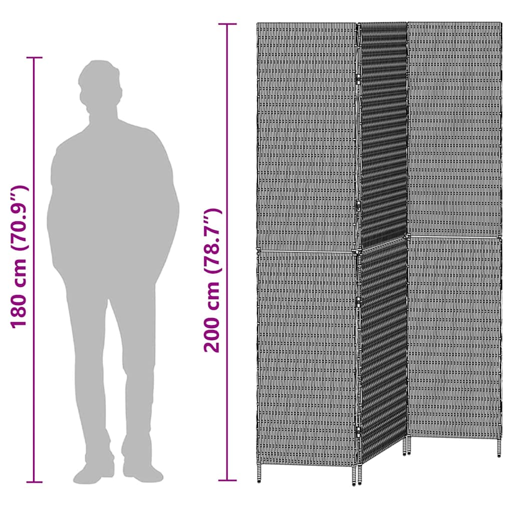vidaXL Διαχωριστής Δωματίου 3 Πάνελ Αναδιπλούμενος Μπεζ 146x200 εκ. Πολυ Ράτταν