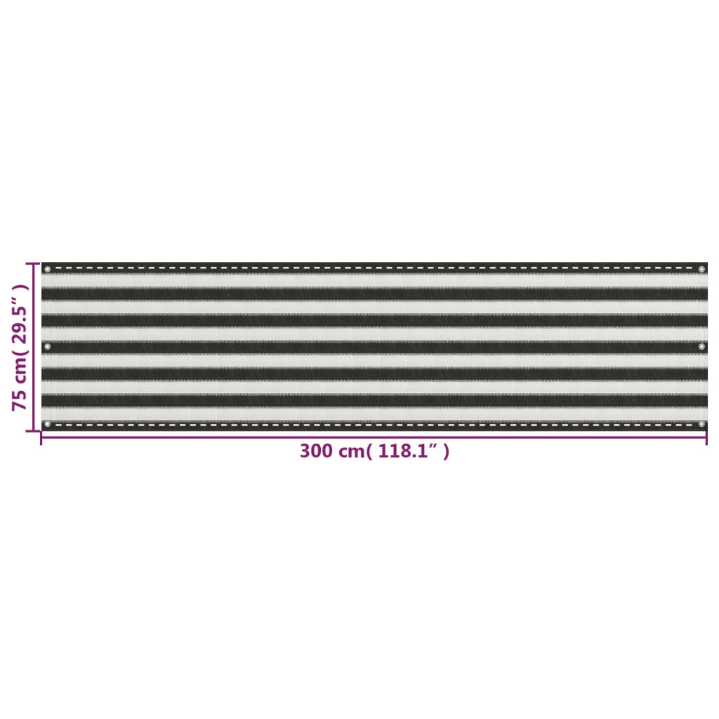 vidaXL Διαχωριστικό Βεράντας Ανθρακί και Λευκό 75 x 300 εκ. από HDPE