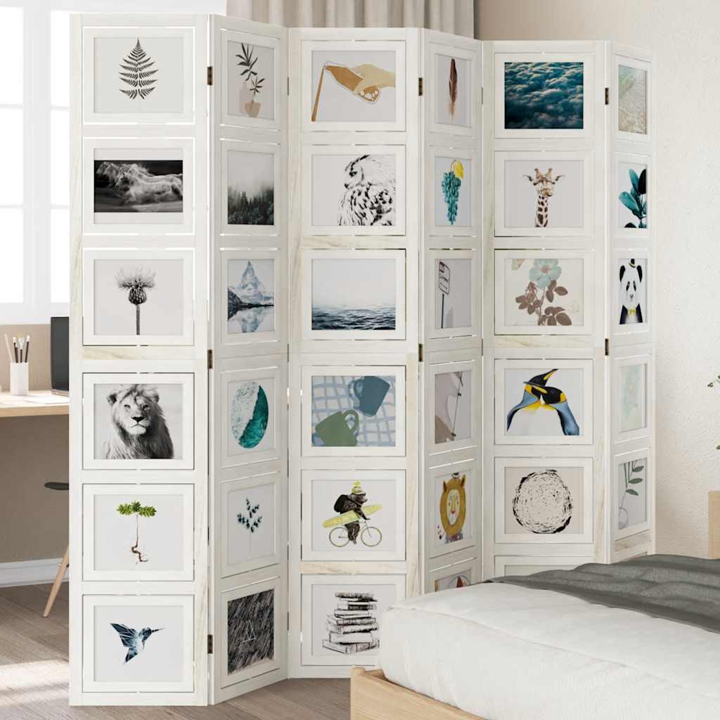 vidaXL Διαχωριστικό Χώρου με 6 Πάνελ Λευκό από Μασίφ Ξύλο Παυλώνιας