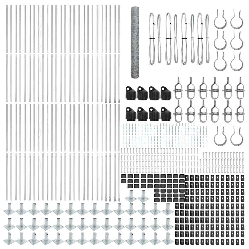 - Πλήρες Σετ: Το σετ έρχεται με 5 στήλες, γαλβανισμένο δίχτυ χάλυβα, γάντζους και καλώδια—όλα όσα χρειάζεσαι για την εγκατάσταση.