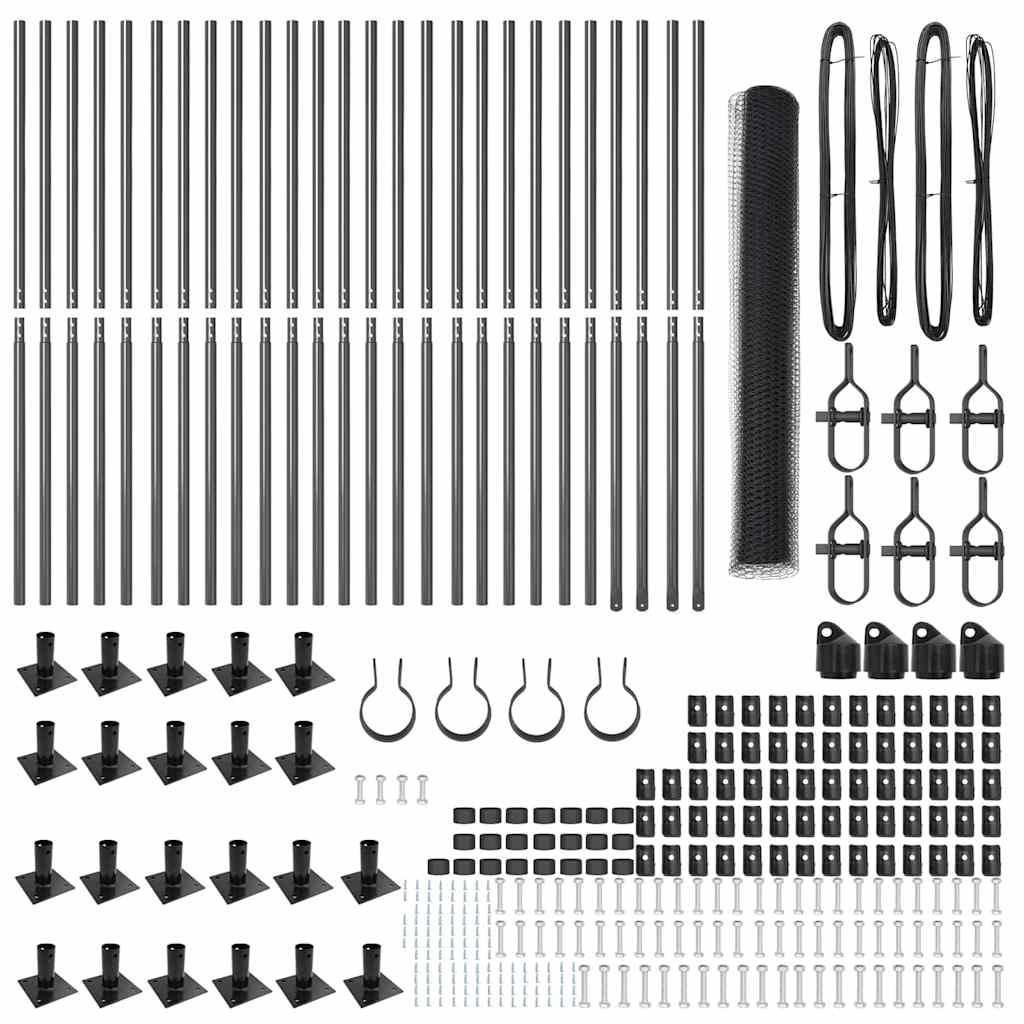 - Πλήρες Κιτ: Περιλαμβάνει όλα όσα χρειάζεσαι για να ξεκινήσεις, με στυλοί φράχτη, δίκτυο, βάσεις, ράβδοι και καλώδιο.