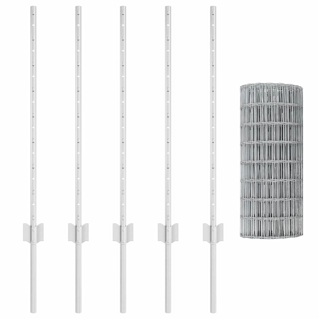 vidaXL Ευρωπαϊκός Φράκτης με 5 Στήλες Ασημί 0,8x10 μ Ατσάλι