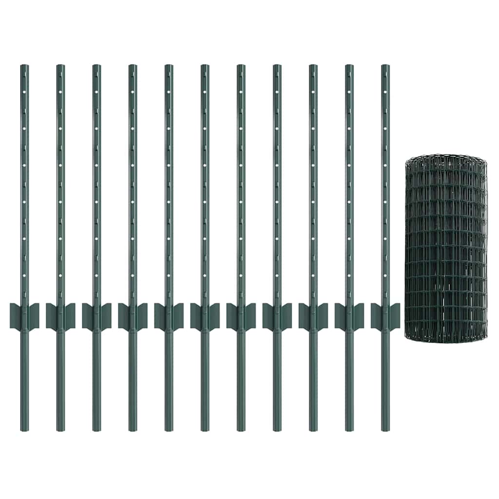 vidaXL Ευρωπαϊκός Φράχτης με 11 Στηρίγματα Πράσινο 0,6x25 μ Ατσάλι
