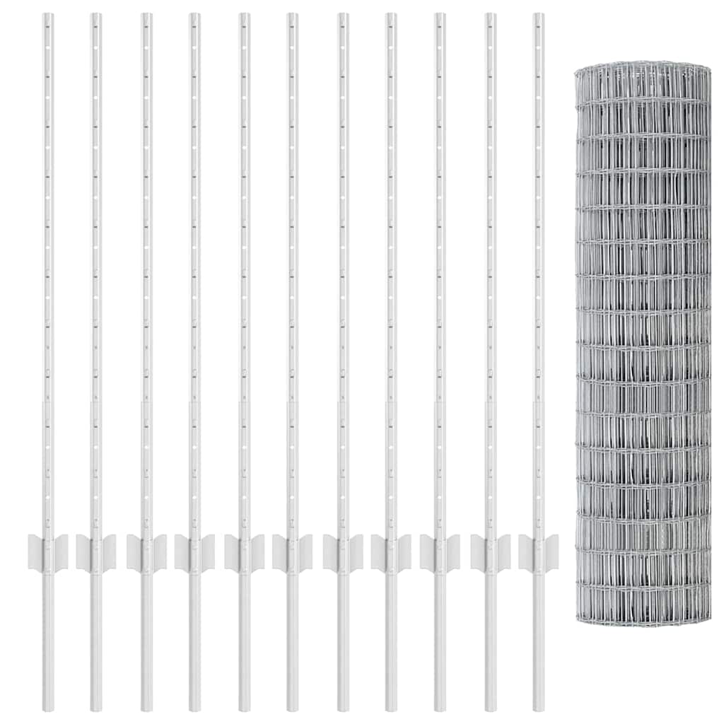 VidaXL Ευρωπαϊκό Φράκτη με 22 Υποστηρίγματα Ασημί 1x25 μ Χάλυβας
