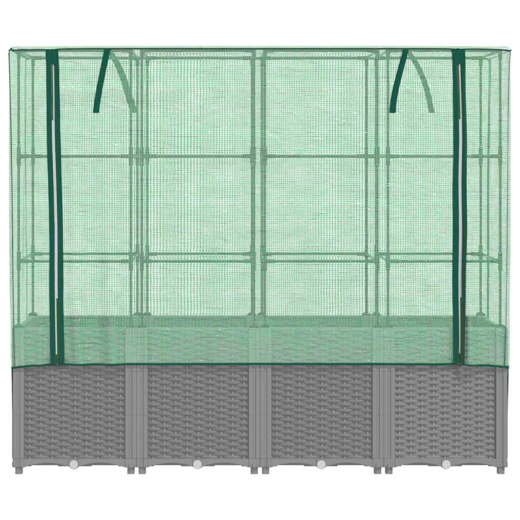• Λειτουργικό κάλυμμα: Η υπερυψωμένη ζαρντινιέρα διαθέτει ένα κάλυμμα πολυαιθυλενίου με αντίσταση στο νερό που προστατεύει τα φυτά σας από τις ακραίες θερμοκρασίες και κρατάει μακριά τα έντομα, τα πουλιά και τα μικρά ζώα.
