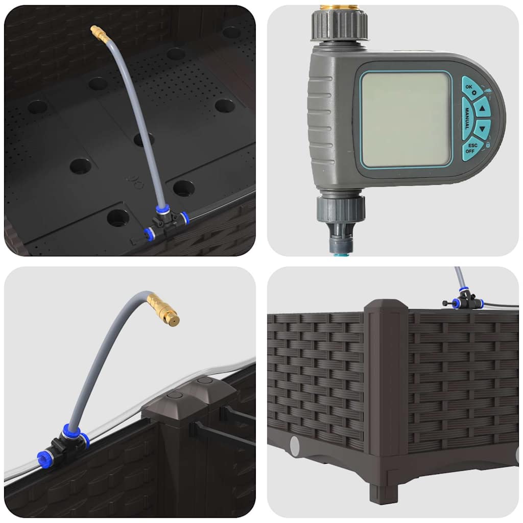 Υλικό Κατασκευής: Η γλάστρα κήπου είναι κατασκευασμένη από ατσάλι ανθεκτικό στις UV, εξασφαλίζοντας αντοχή και αντίσταση σε καιρικές μεταβολές. Αυτή η επιλογή υλικού προσφέρει στιβαρή προστασία, αντέχοντας στην σκληρή έκθεση στον ήλιο και τις εποχιακές αλλαγές, διατηρώντας τα φυτά σας να ανθούν καθόλη τη διάρκεια του χρόνου χωρίς να διακυβεύεται η δομική ακεραιότητα της γλάστρας.,Ενσωματωμένο Σύστημα Άρδευσης: Εξοπλισμένη με ένα προηγμένο σύστημα άρδευσης, αυτή η γλάστρα κήπου απομακρύνει την αβεβαιότητα του ποτίσματος. Χρησιμοποιώντας ενσωματωμένα κανάλια, διανέμει αποτελεσματικά το νερό απευθείας στις ρίζες των φυτών, διασφαλίζοντας ότι λαμβάνουν επαρκή υγρασία ενώ μειώνει την σπατάλη νερού και υποστηρίζει υγιέστερη ανάπτυξη.,Μοντέρνος Σχεδιασμός: Προβάλλοντας ένα κομψό υφαντό σχέδιο, η απλή κομψότητα αυτής της γλάστρας ευθυγραμμίζεται με την σύγχρονη αισθητική. Η μη ανακλαστική ματ φινίρισμα προσθέτει μια εκλεπτυσμένη πινελιά, επιτρέποντάς της να ενσωματωθεί ομαλά σε διάφορες εξωτερικές ρυθμίσεις, ενώ ενσωματώνει τον σύγχρονο στυλ με τις καθαρές, διακριτικές γραμμές της.,Πολυμορφική Χρήση: Ιδανική για τοποθέτηση σε εξωτερικό χώρο, αυτή η γλάστρα εξυπηρετεί τόσο διακοσμητικούς όσο και πρακτικούς σκοπούς. Ο ευρύχωρος εσωτερικός της χώρος φιλοξενεί διάφορα φυτικά είδη, από πλούσιες φτέρες μέχρι ζωντανά λουλούδια, κάνοντάς την κατάλληλη για εποχιακές μεταβάσεις ή για χρήση καθ' όλη τη διάρκεια του έτους, προσφέροντας μια κορυφαία φυτευτική εμπειρία για χόμπι και έμπειρους κηπουρούς.,Φροντίδα & Συντήρηση: Για να διατηρηθεί η άψογη εμφάνισή της, τοποθετήστε αυτή τη γλάστρα σε μια σταθερή τοποθεσία και αποφύγετε την έκθεση σε άμεσο ηλιακό φως για παρατεταμένες περιόδους. Καθαρίζετε τακτικά με ένα στεγνό πανί, διασφαλίζοντας ασφαλείς συνδέσεις κατά τη διάρκεια της συναρμολόγησης για την εγγύηση σταθερότητας και αισθητικής αξίας over time.- Χρώμα: Καφέ
