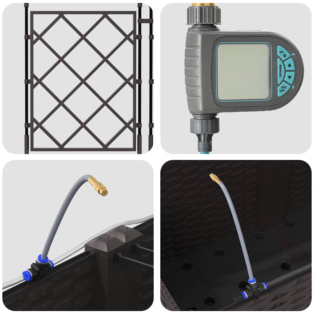 Υλικό Κατασκευής: Η γλάστρα κήπου είναι κατασκευασμένη από ατσάλι ανθεκτικό στις UV, εξασφαλίζοντας αντοχή και αντίσταση σε καιρικές μεταβολές. Αυτή η επιλογή υλικού προσφέρει στιβαρή προστασία, αντέχοντας στην σκληρή έκθεση στον ήλιο και τις εποχιακές αλλαγές, διατηρώντας τα φυτά σας να ανθούν καθόλη τη διάρκεια του χρόνου χωρίς να διακυβεύεται η δομική ακεραιότητα της γλάστρας.,Ενσωματωμένο Σύστημα Άρδευσης: Εξοπλισμένη με ένα προηγμένο σύστημα άρδευσης, αυτή η γλάστρα κήπου απομακρύνει την αβεβαιότητα του ποτίσματος. Χρησιμοποιώντας ενσωματωμένα κανάλια, διανέμει αποτελεσματικά το νερό απευθείας στις ρίζες των φυτών, διασφαλίζοντας ότι λαμβάνουν επαρκή υγρασία ενώ μειώνει την σπατάλη νερού και υποστηρίζει υγιέστερη ανάπτυξη.,Μοντέρνος Σχεδιασμός: Προβάλλοντας ένα κομψό υφαντό σχέδιο, η απλή κομψότητα αυτής της γλάστρας ευθυγραμμίζεται με την σύγχρονη αισθητική. Η μη ανακλαστική ματ φινίρισμα προσθέτει μια εκλεπτυσμένη πινελιά, επιτρέποντάς της να ενσωματωθεί ομαλά σε διάφορες εξωτερικές ρυθμίσεις, ενώ ενσωματώνει τον σύγχρονο στυλ με τις καθαρές, διακριτικές γραμμές της.,Πολυμορφική Χρήση: Ιδανική για τοποθέτηση σε εξωτερικό χώρο, αυτή η γλάστρα εξυπηρετεί τόσο διακοσμητικούς όσο και πρακτικούς σκοπούς. Ο ευρύχωρος εσωτερικός της χώρος φιλοξενεί διάφορα φυτικά είδη, από πλούσιες φτέρες μέχρι ζωντανά λουλούδια, κάνοντάς την κατάλληλη για εποχιακές μεταβάσεις ή για χρήση καθ' όλη τη διάρκεια του έτους, προσφέροντας μια κορυφαία φυτευτική εμπειρία για χόμπι και έμπειρους κηπουρούς.,Φροντίδα & Συντήρηση: Για να διατηρηθεί η άψογη εμφάνισή της, τοποθετήστε αυτή τη γλάστρα σε μια σταθερή τοποθεσία και αποφύγετε την έκθεση σε άμεσο ηλιακό φως για παρατεταμένες περιόδους. Καθαρίζετε τακτικά με ένα στεγνό πανί, διασφαλίζοντας ασφαλείς συνδέσεις κατά τη διάρκεια της συναρμολόγησης για την εγγύηση σταθερότητας και αισθητικής αξίας over time.- Χρώμα: Καφέ