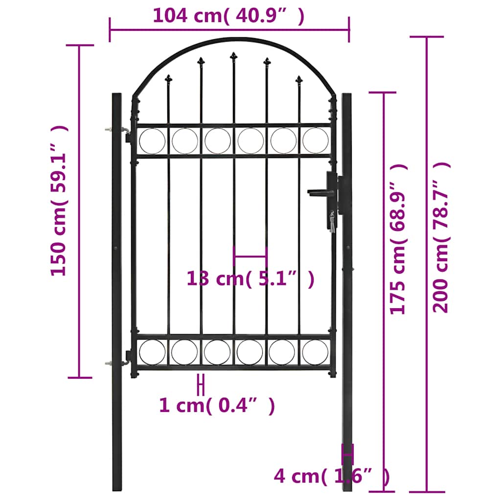 vidaXL Καγκελόπορτα με Αψιδωτή Κορυφή Μαύρη 100 x 150 εκ. από Ατσάλι