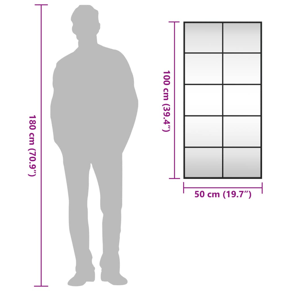 vidaXL Καθρέφτης Ορθογώνιος Μαύρος 50 x 100 εκ. από Σίδερο