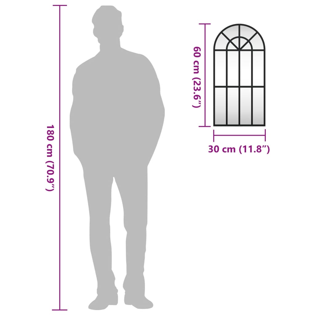 vidaXL Καθρέφτης Τοίχου Αψίδα Μαύρος 30x60 εκ. από Σίδερο